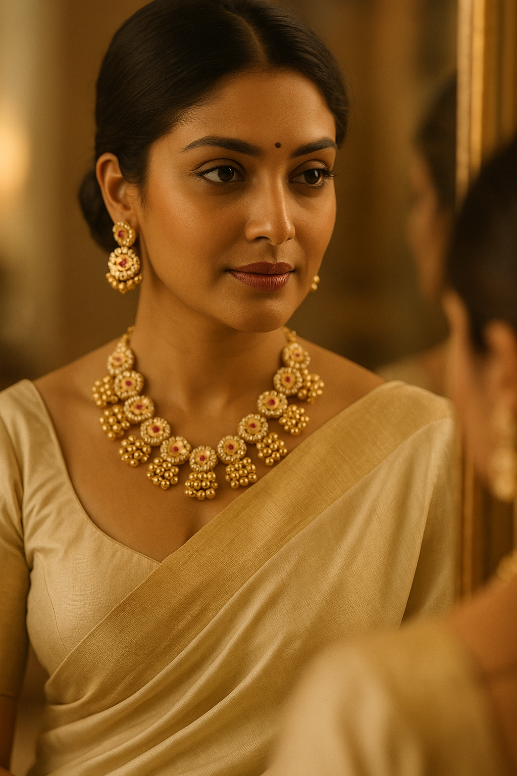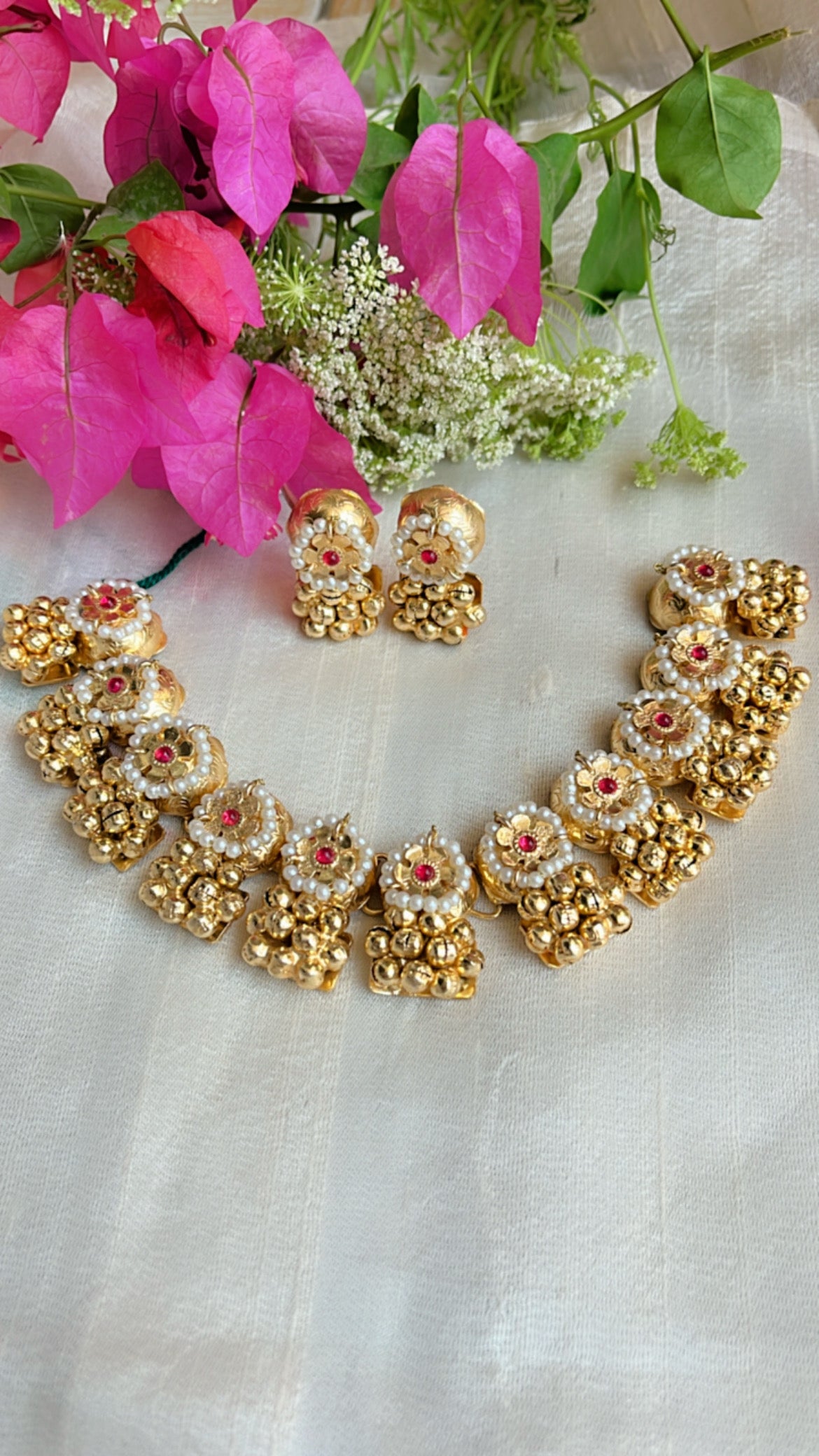 This Dhriti Neckpiece Set is a beautiful and bold statement piece made from high quality brass. Elevate any outfit with this stunning accessory, perfect for any occasion. Crafted with expertise and precision, this neckpiece is sure to make a lasting impression.