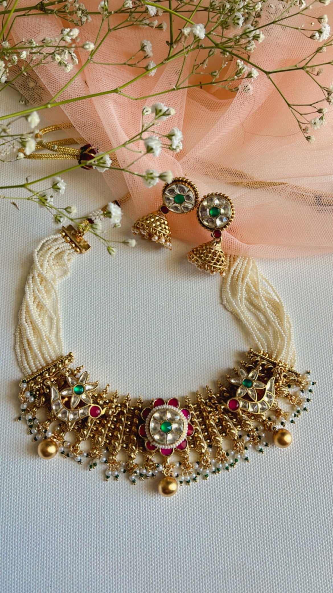 - Material: Pachi Kundan, Beads, Pearls