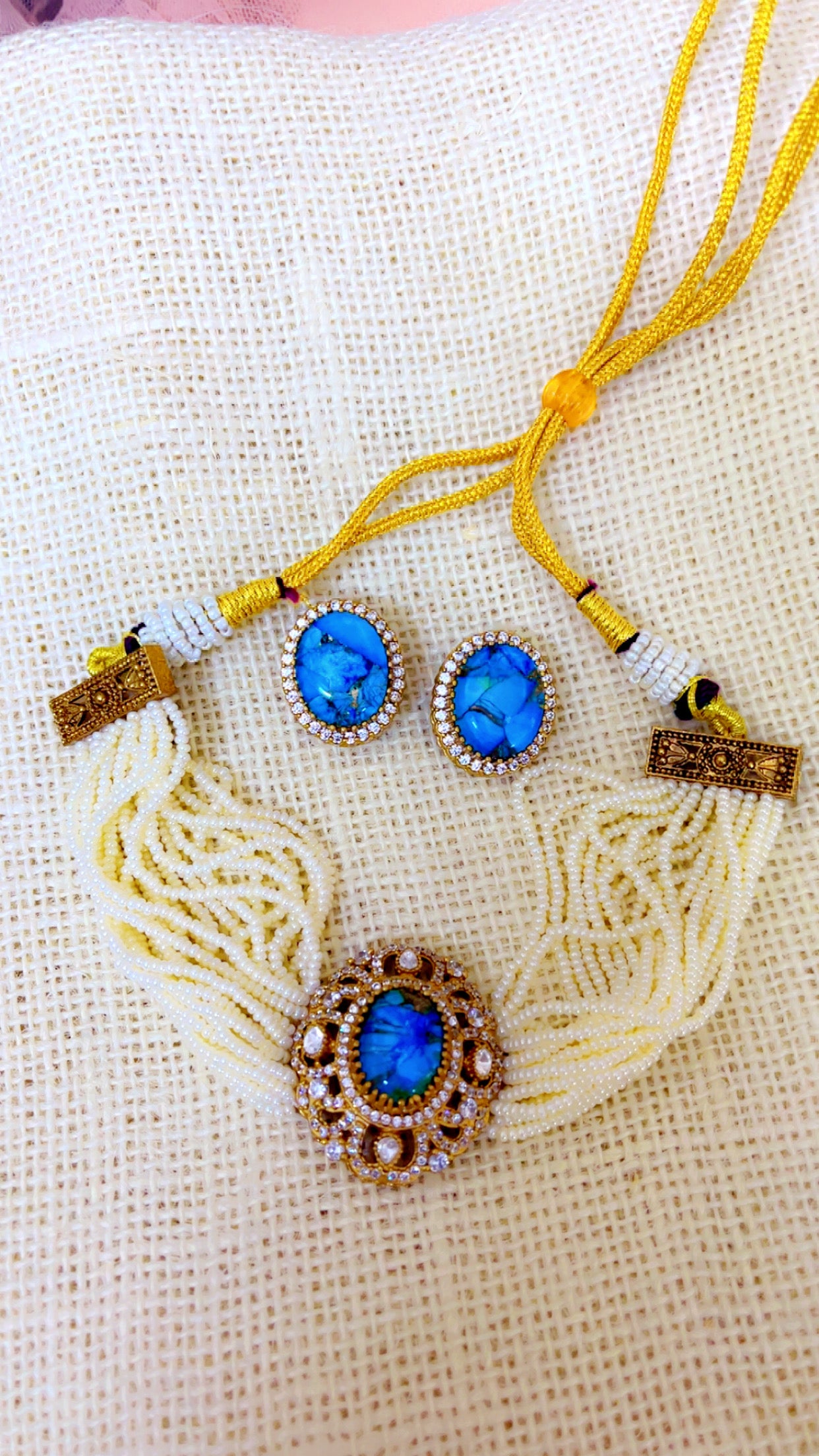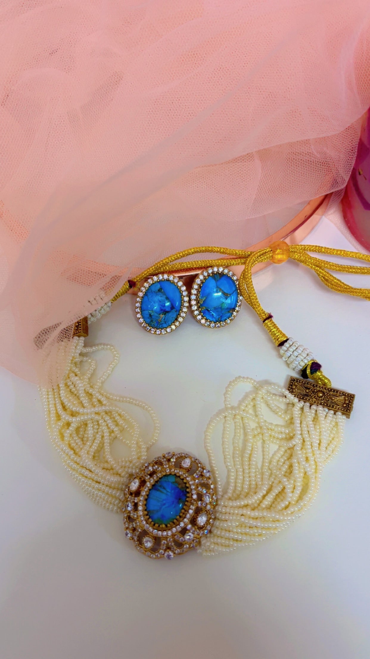 Elevate your style with the Pearl Pari Neckpiece Set, a timeless blend of elegance and sophistication. Crafted to enhance any ensemble, this set features lustrous pearls that offer a beautiful, evergreen appeal. Perfect for special occasions or refined everyday wear, it adds a graceful touch that complements your natural charm with expert finesse.