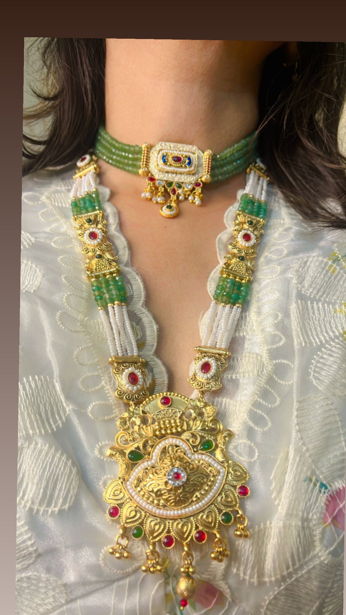 This Sommya Neckpiece Set is a beautiful and bold statement piece made from high quality metal. Elevate any outfit with this stunning accessory, perfect for any occasion. Crafted with expertise and precision, this neckpiece is sure to make a lasting impression.