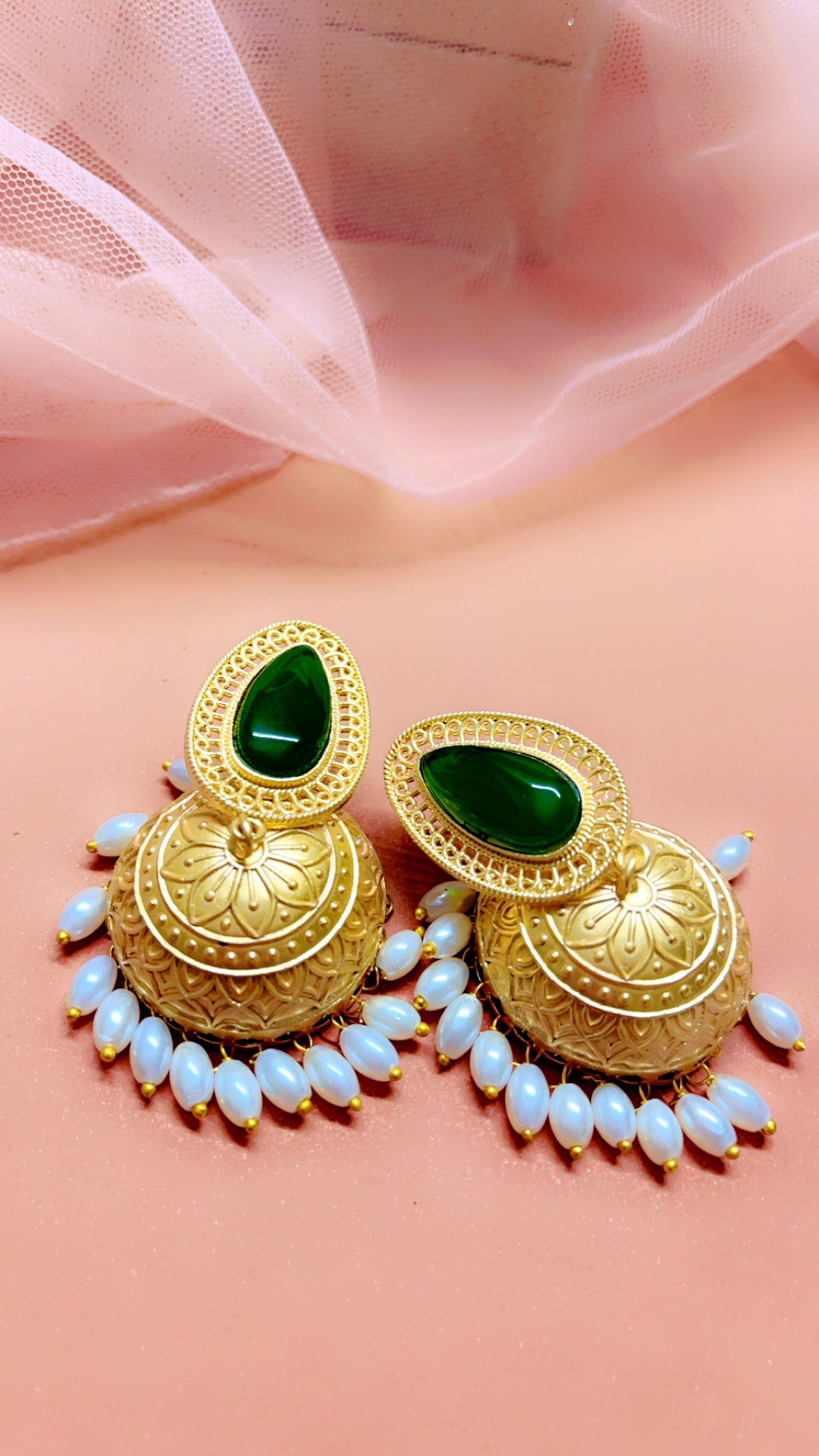 Enhance your style with these elegant Gita Earrings. Featuring beautiful pearls and a golden finish, these earrings are perfect for any marriage or festive occasion. Made with high-quality materials, these earrings are ready to elevate any outfit.