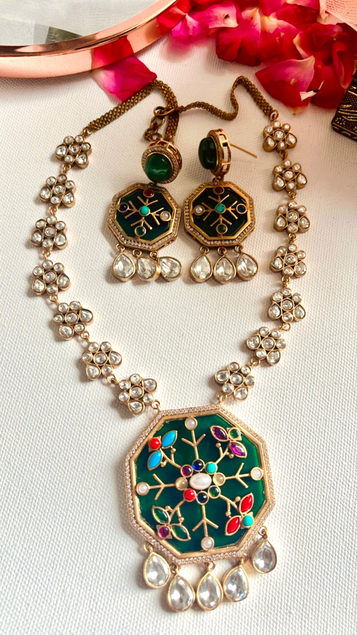 Green Ajanara Neckpiece Set