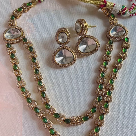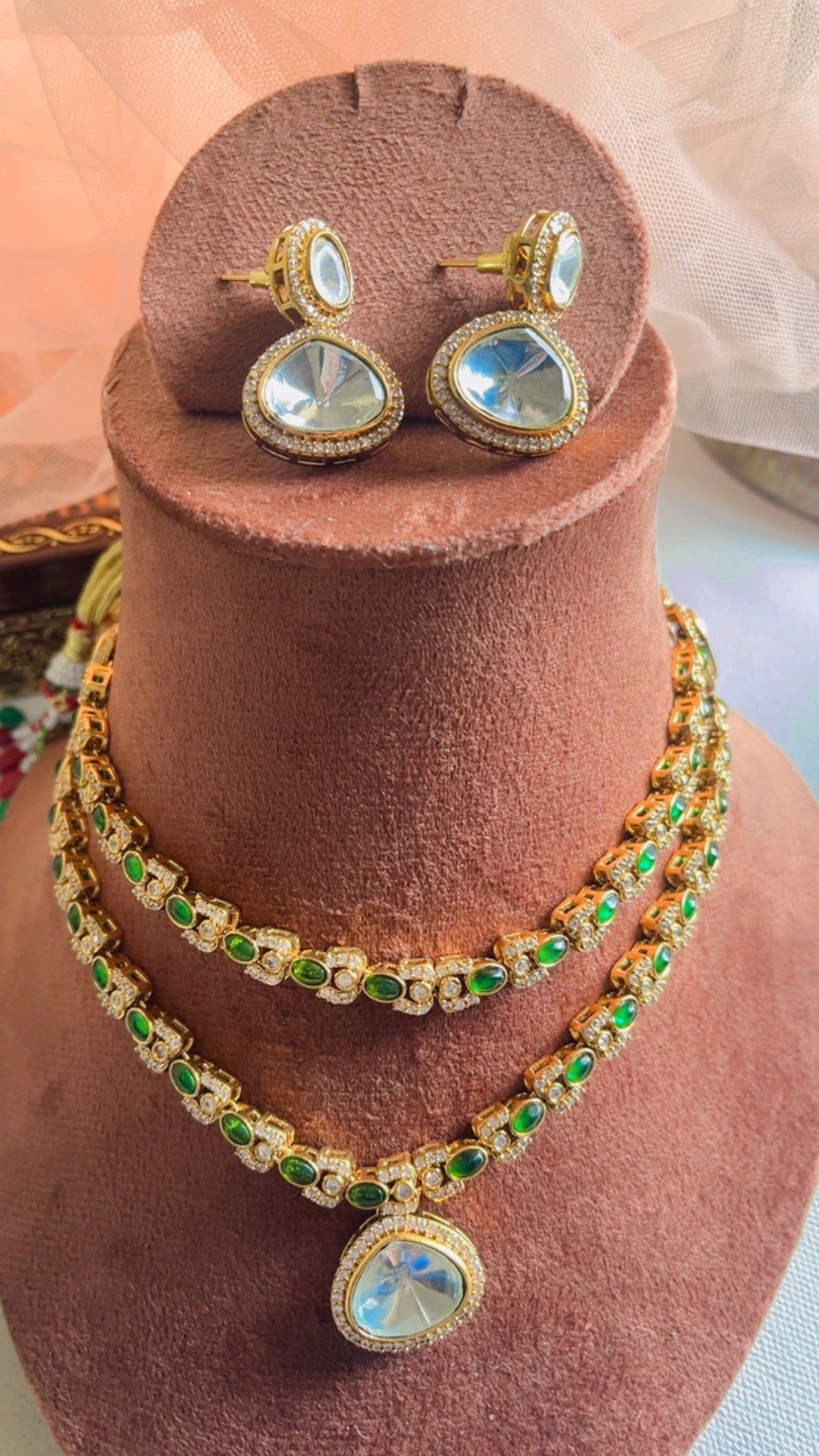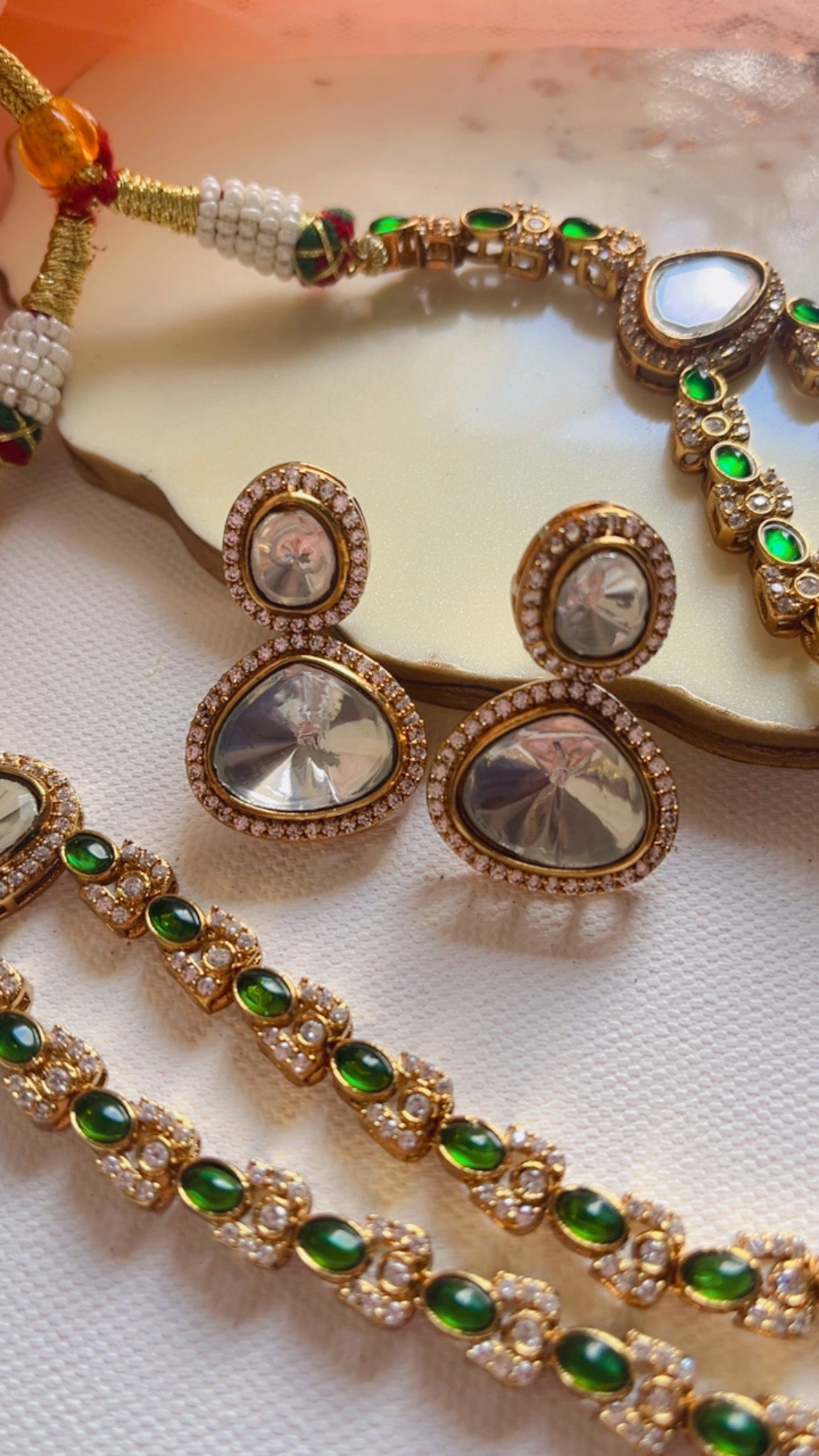 The Siddika Necklace Set features stunning polki kundan and is perfect for weddings and other special occasions. Its beautiful design and high quality make it the ideal accessory for any formal event. Elevate your style with this exquisite necklace set.