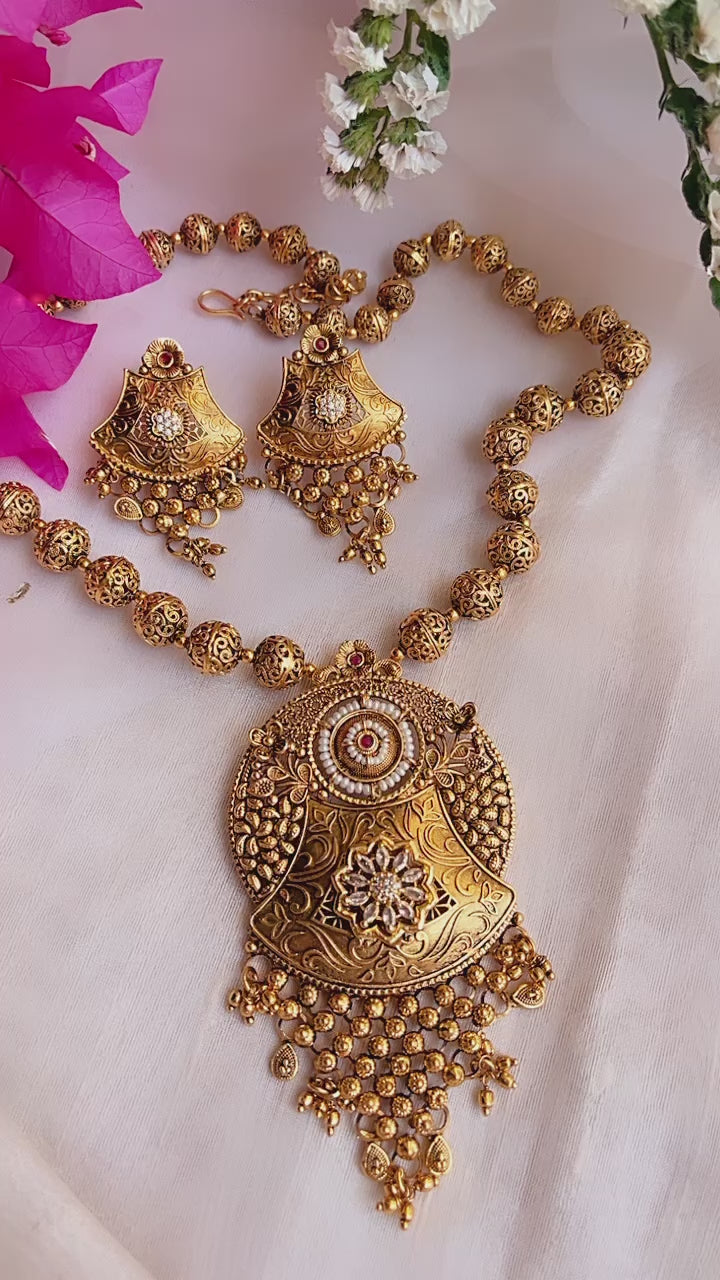 So, don't miss out on this gorgeous necklace set this eventful season as you have ramps to walk ahead.