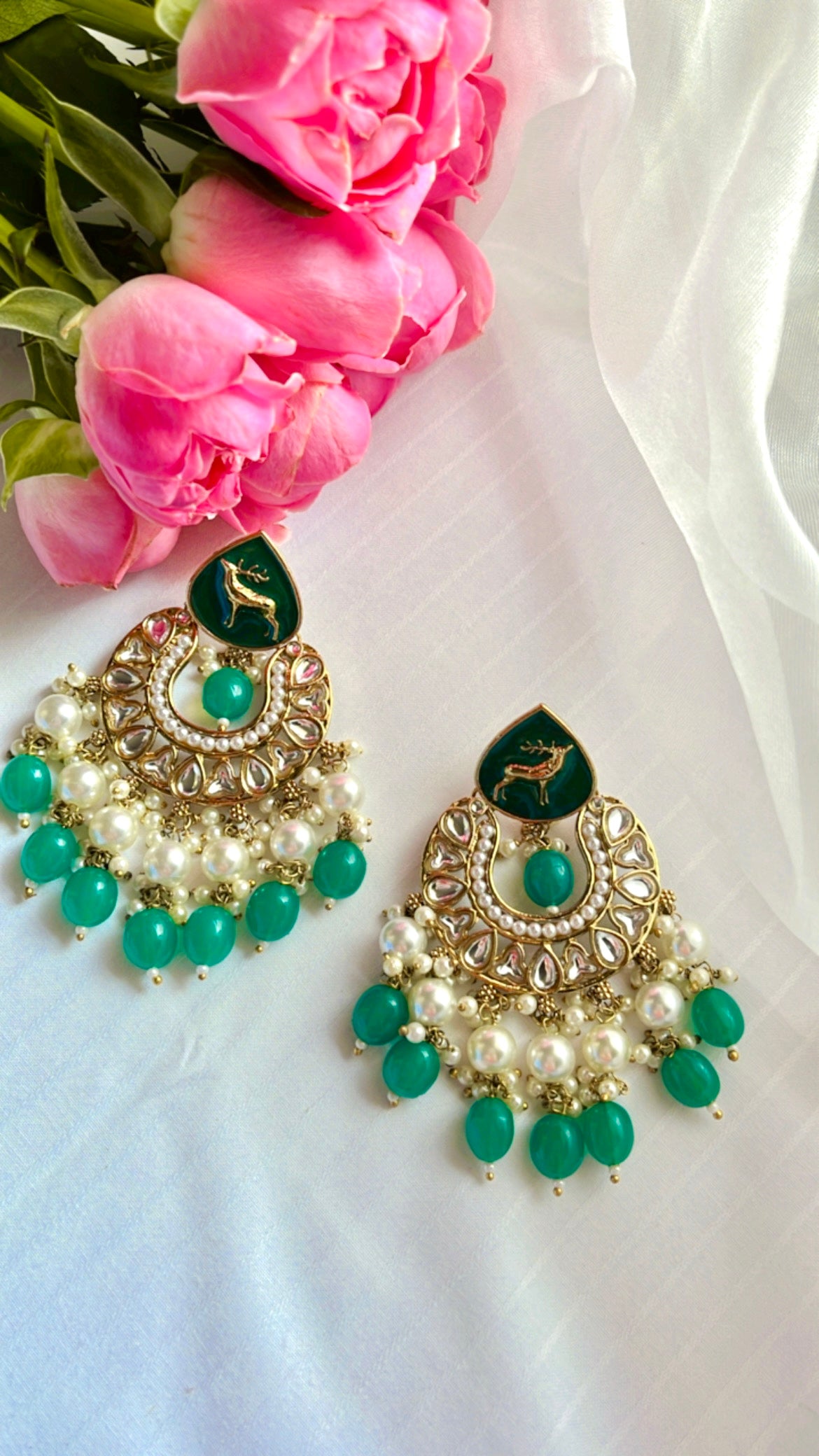 These Purple Earrings are the perfect party accessory. With intricate detailing and a stunning combination of pearl, kundan, and Purple embellishments, these long earrings are sure to make a statement. Elevate any outfit with these elegant and eye-catching earrings.