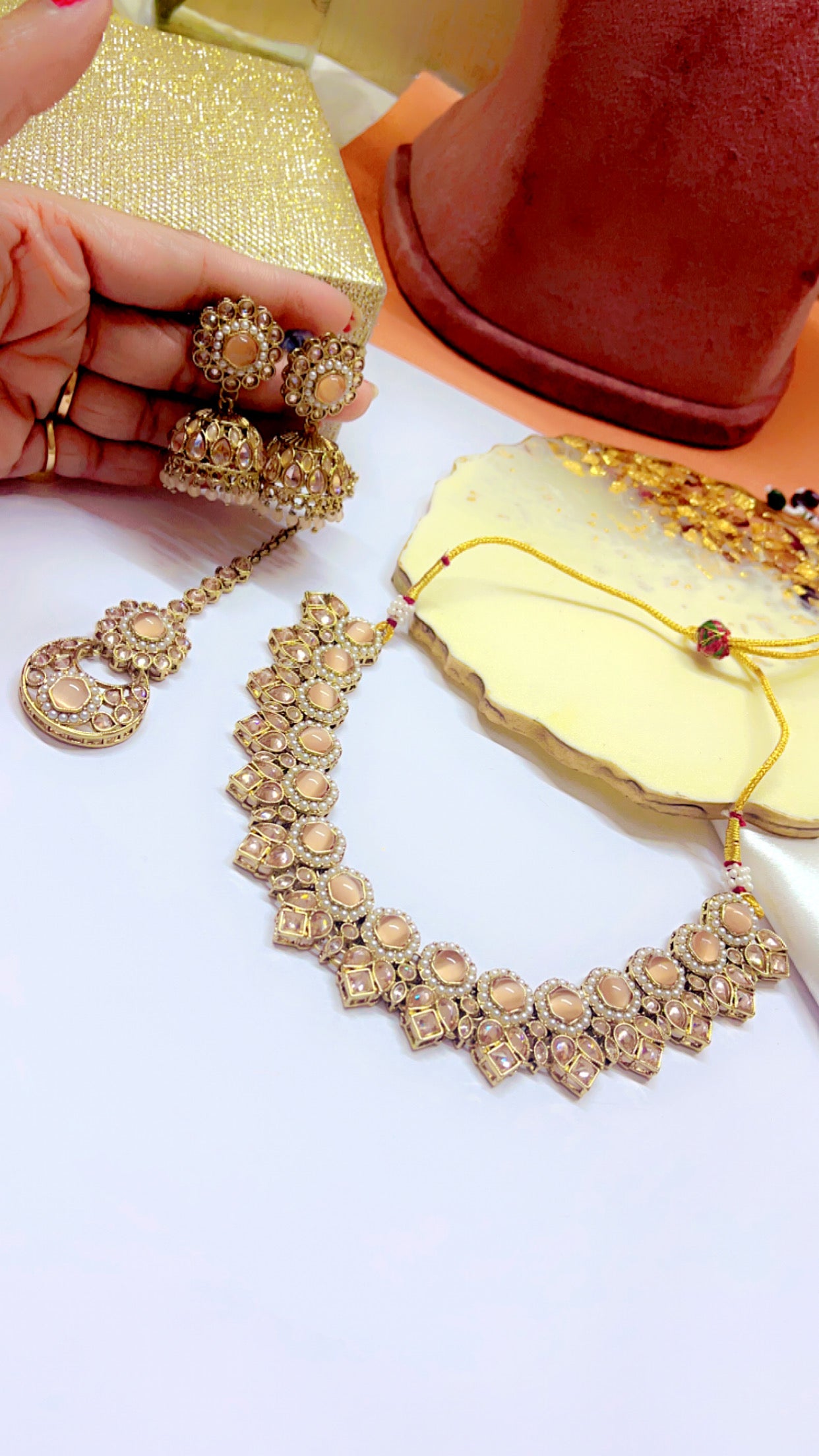 Package Content | 1 pc of neckpiece and pair of earrings, 1 mang Tikka |