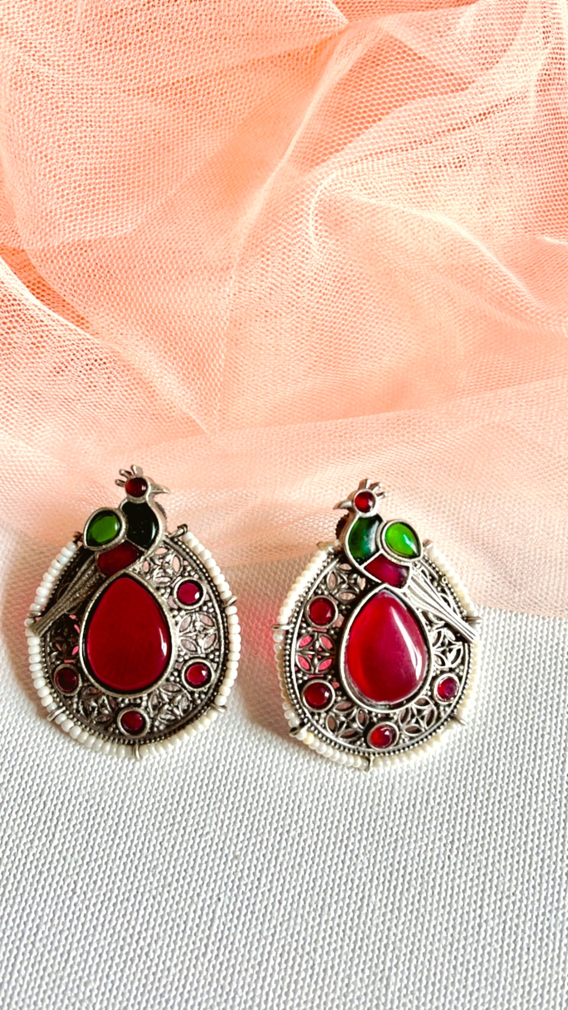 Crafted from high-quality brass, these Pink Heena Silver Earrings elegantly enhance any outfit. The simple design adds a touch of sophistication to your style, perfect for any occasion. With their timeless look, these earrings are a must-have addition to any jewelry collection.