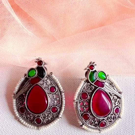 Pink Heena Silver Earring