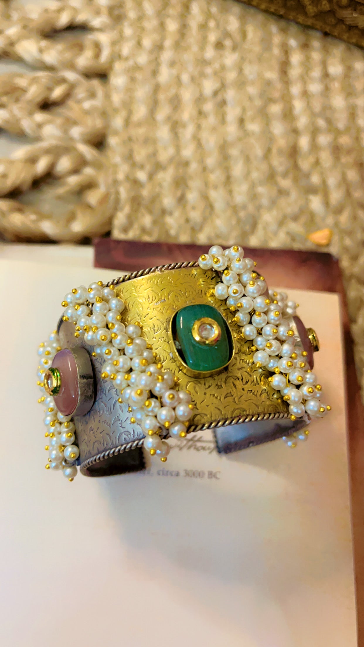 Experience luxury and elegance with our Rishika Silver Handcuff. Made with high-quality materials, it features intricate Silver work, adorned with a delicate Flower motif detailing, A beautiful addition to any outfit, perfect for those who appreciate the finer things in life. This bangle adds a touch of boho flair to any outfit. Bold and beautiful, it's the perfect fusion accessory for those looking to make a statement.
