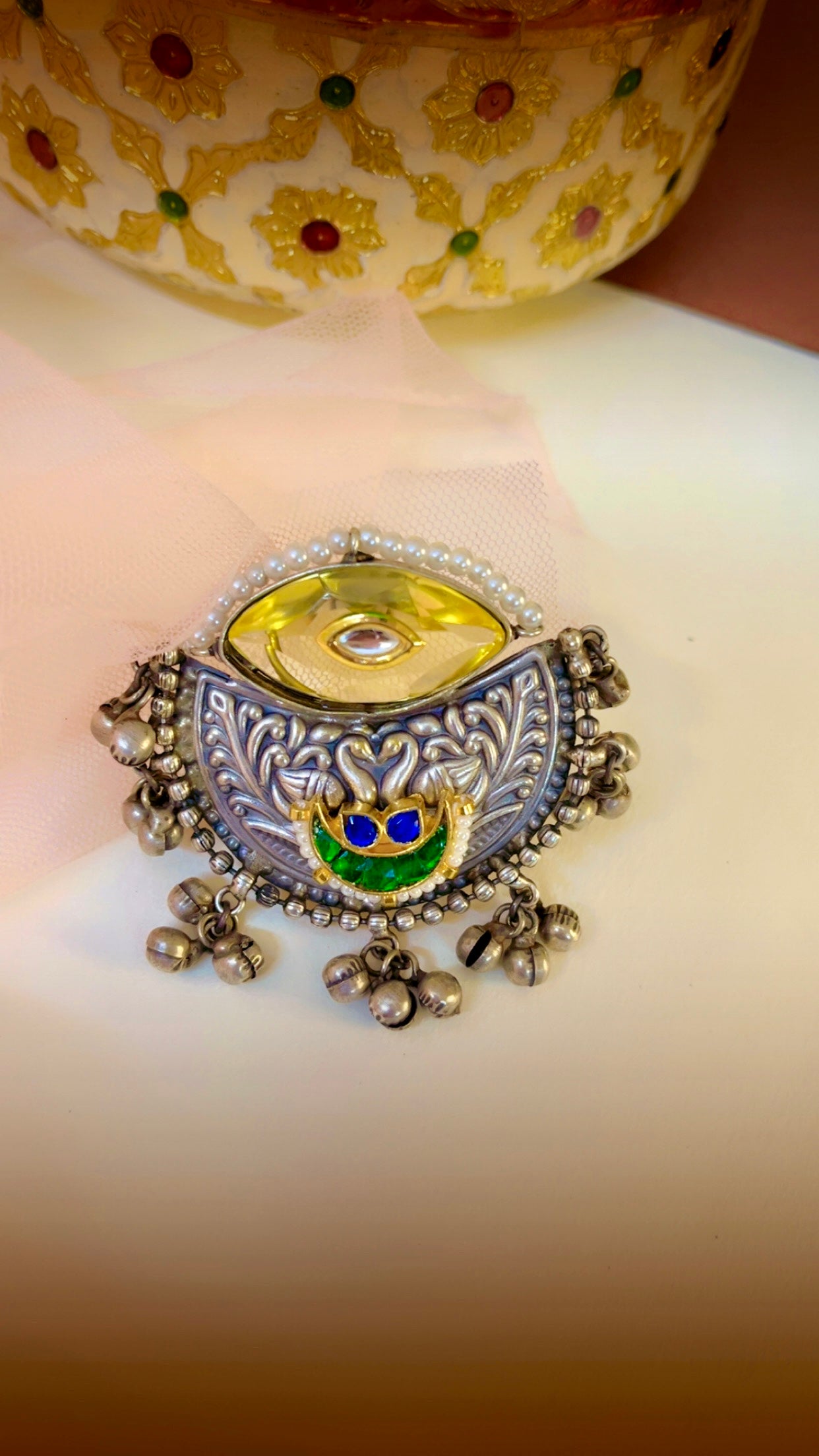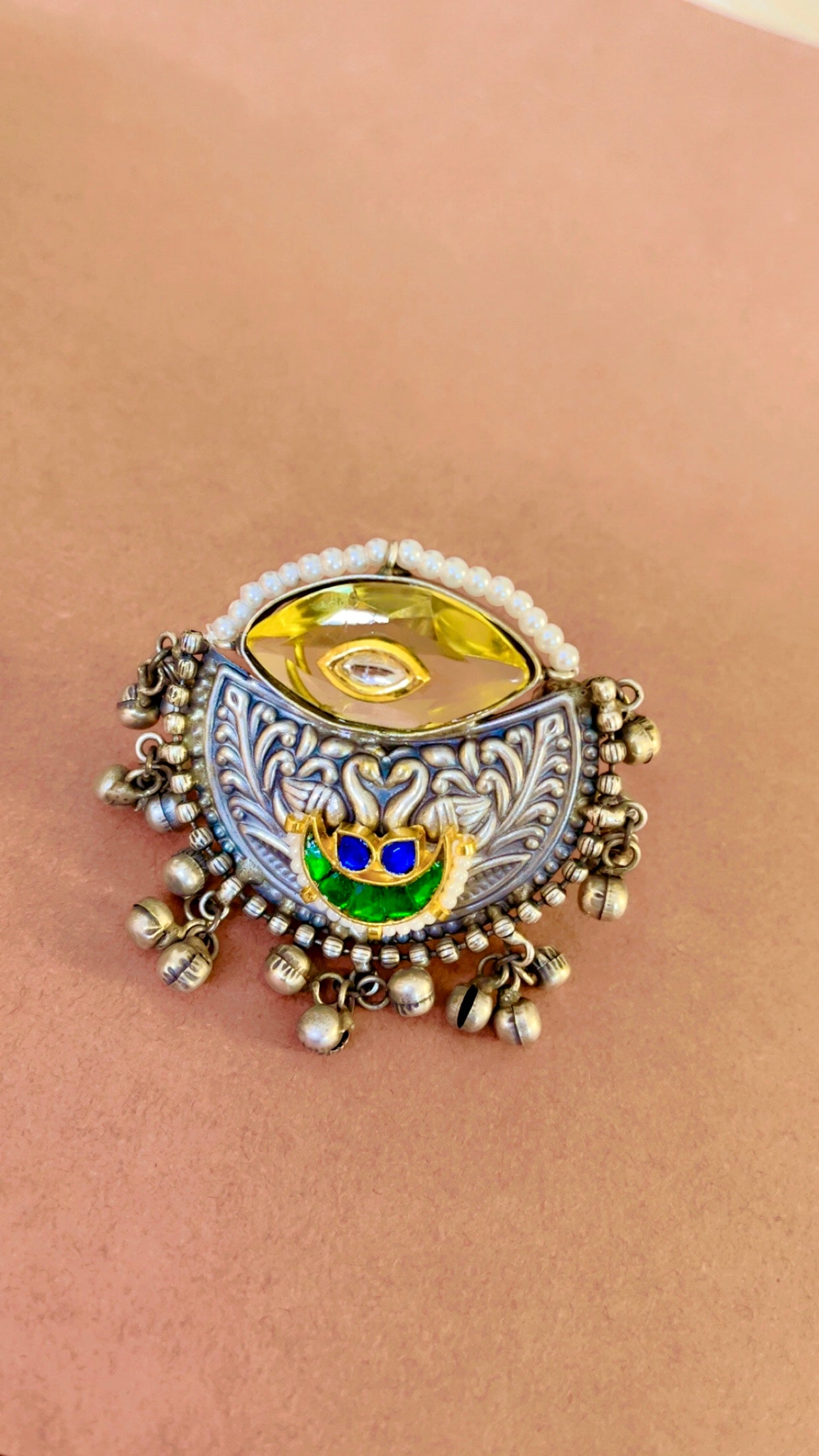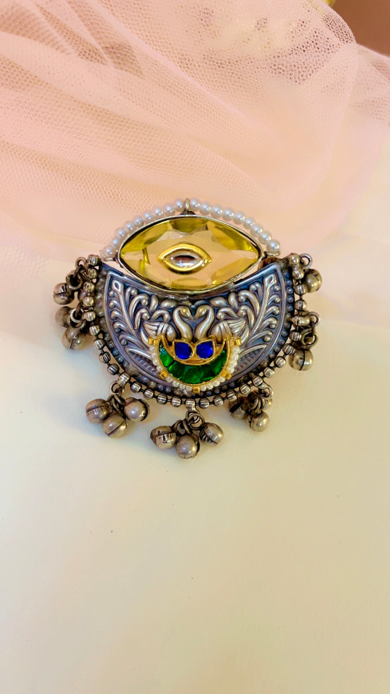 Elevate your festive looks with the Joshnika Silver Ring, a striking statement piece crafted to impress. Its elegant design complements celebration attire, adding a touch of sophistication and sparkle to any ensemble. Perfect for special occasions, this ring enhances your style with expert precision and refined beauty.