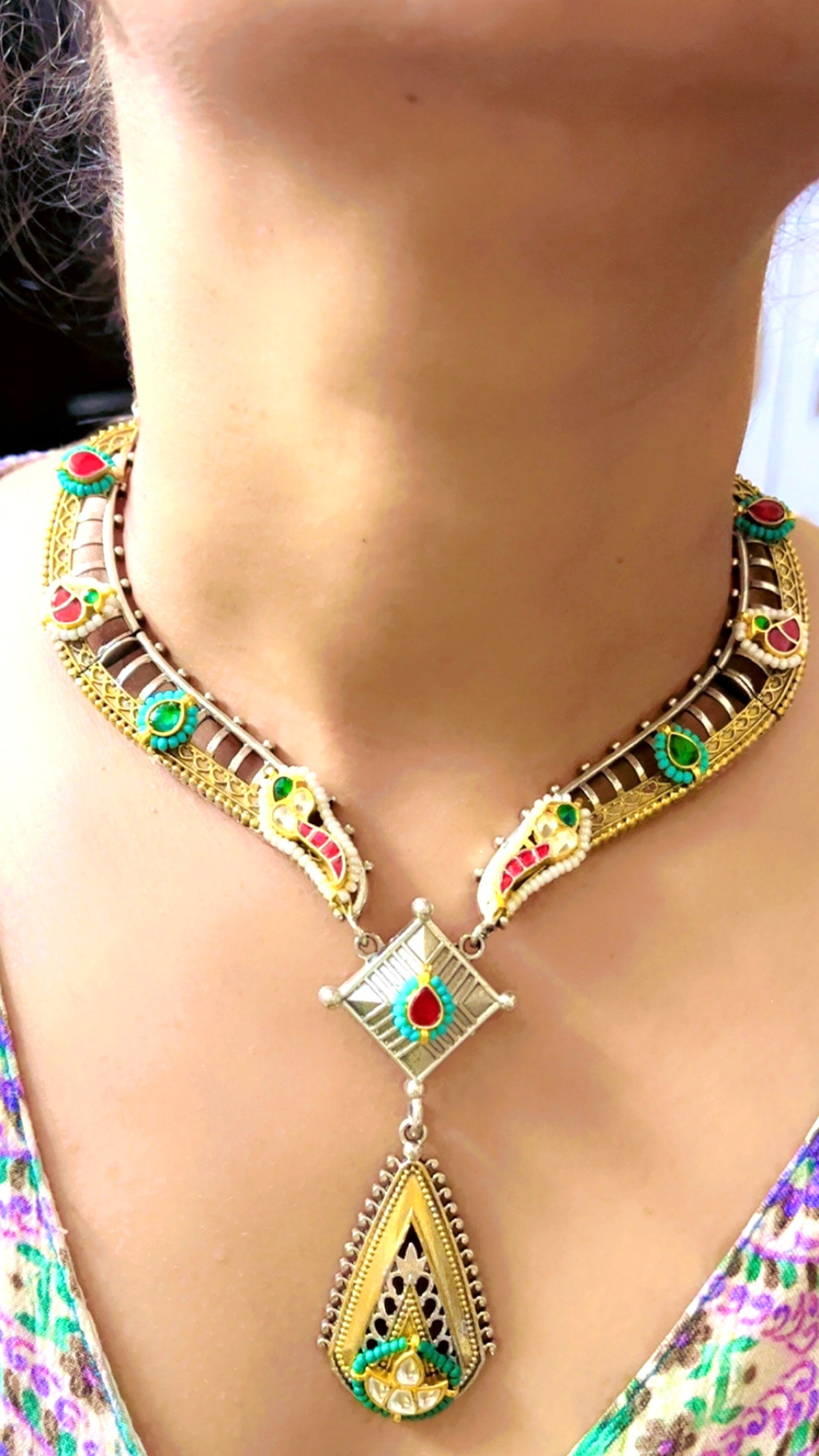 Elevate your elegance with the Nisha Silver Neckpiece Set, a beautifully handcrafted accessory designed for those who appreciate high-quality artistry. This statement piece showcases intricate silverwork that complements both traditional and contemporary styles, making it a versatile addition to your collection. Perfect for special occasions, it adds a refined touch that highlights your sophisticated taste.