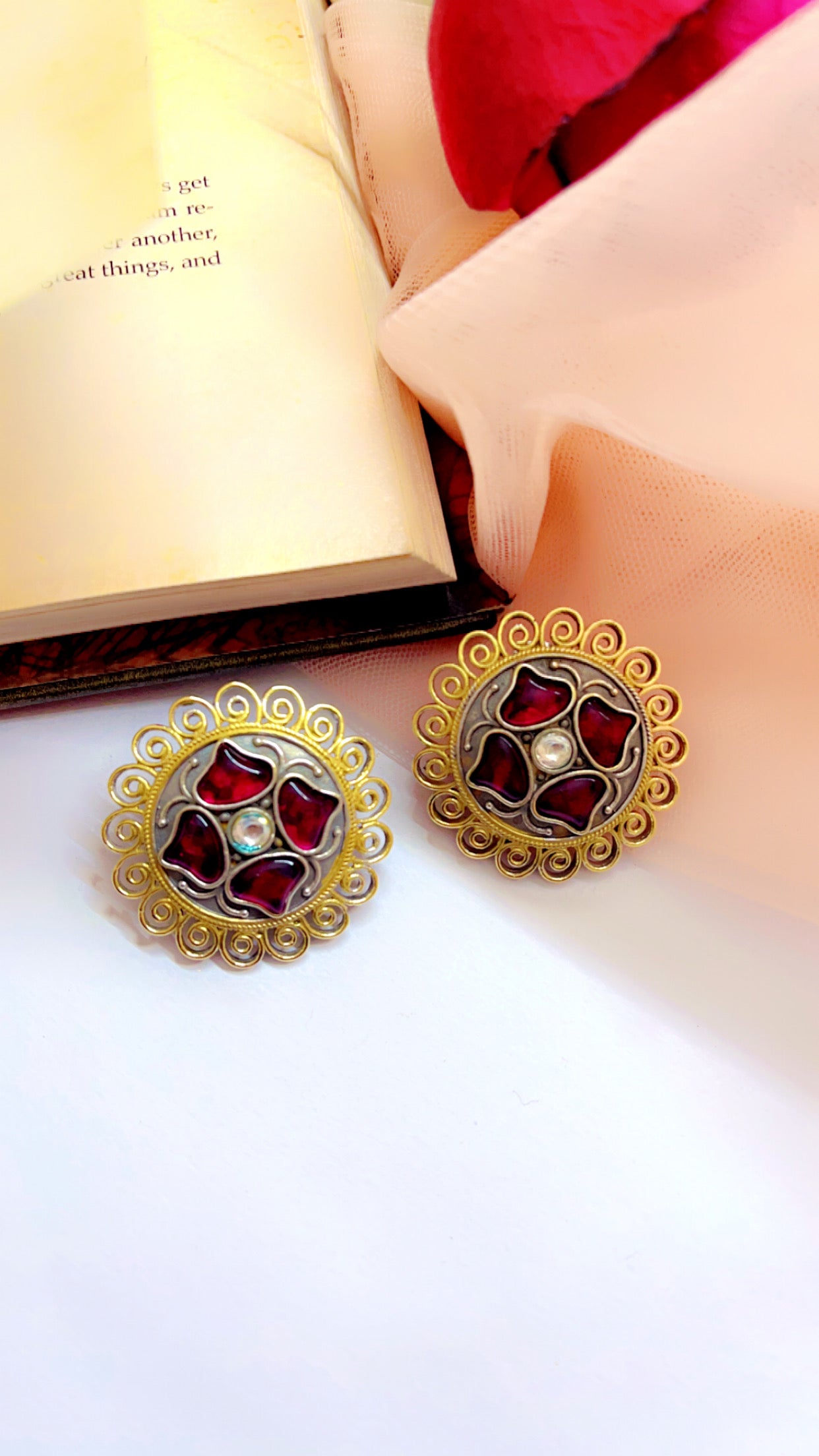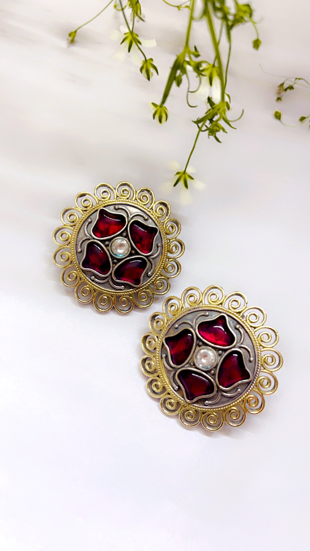 Red Tashi Silver Earring