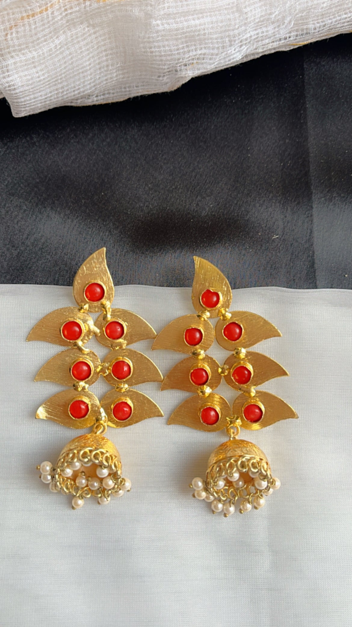 Transform any outfit with our Red Prisha Ethnic Earrings. These earrings are the perfect addition to your jewelry collection. Suitable for any occasion, they effortlessly elevate your Indian attire. Upgrade your style with our elegant and versatile earrings.