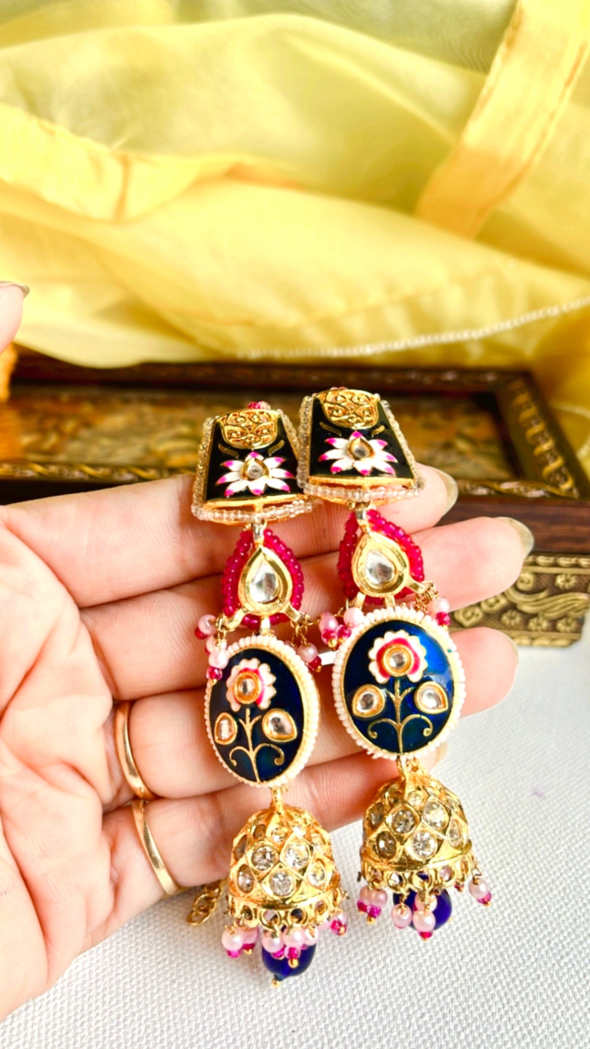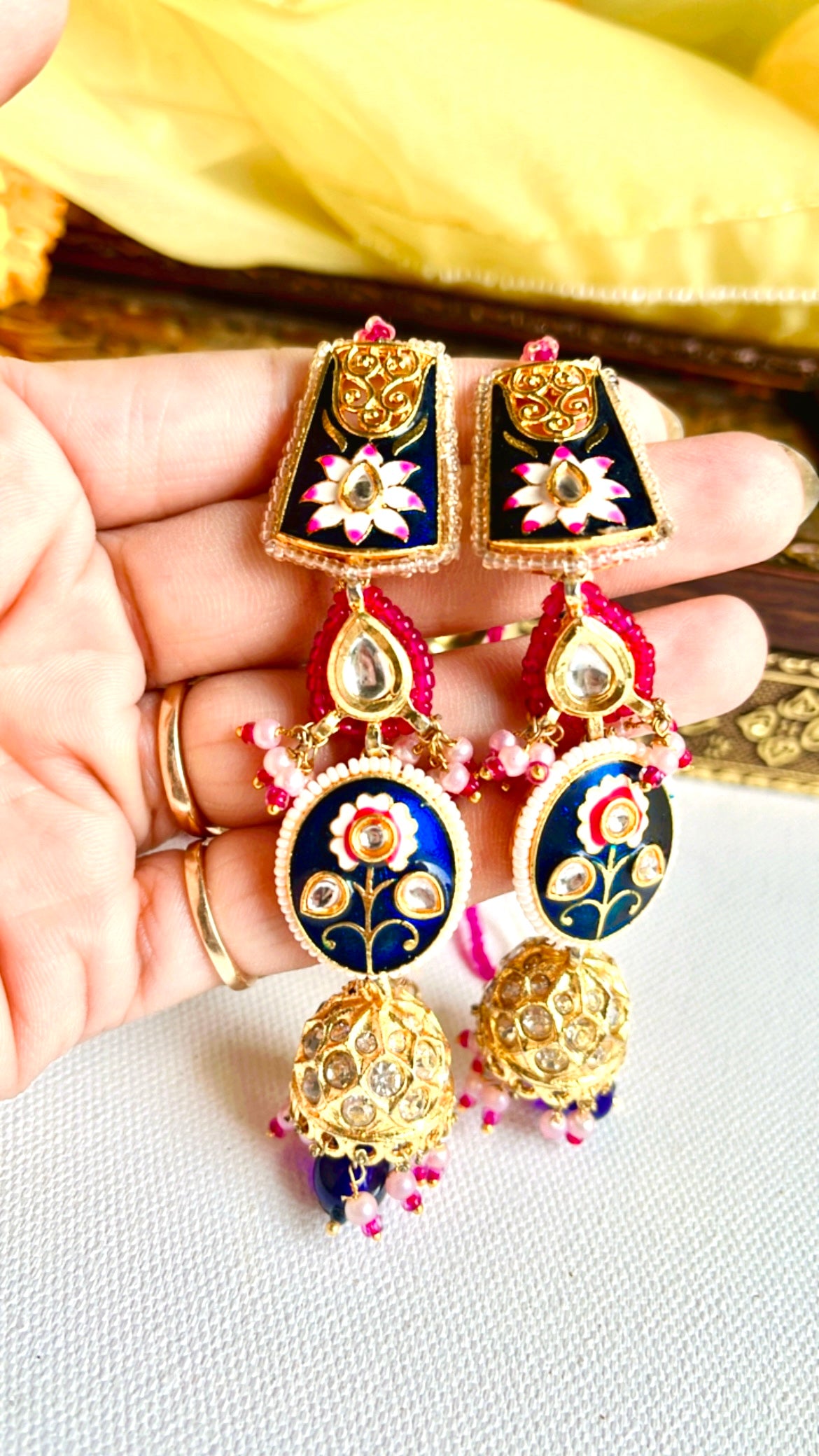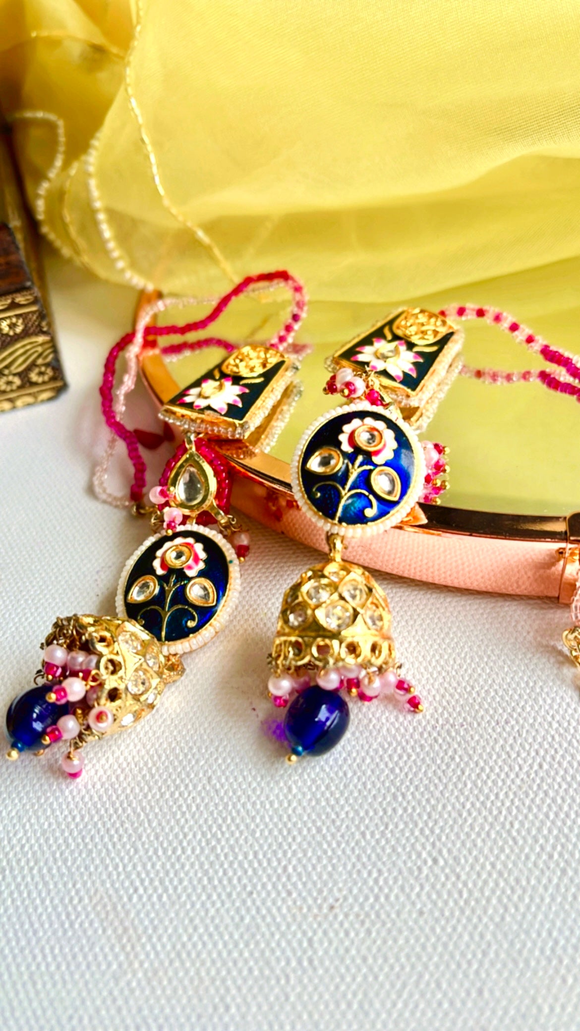 Enhance your wedding or festive look with our beautiful and elegant Blue Kasish Earring. Made with the highest attention to detail, these earrings are the perfect addition to any outfit. Their stunning design will make you stand out and feel confident on your special day.