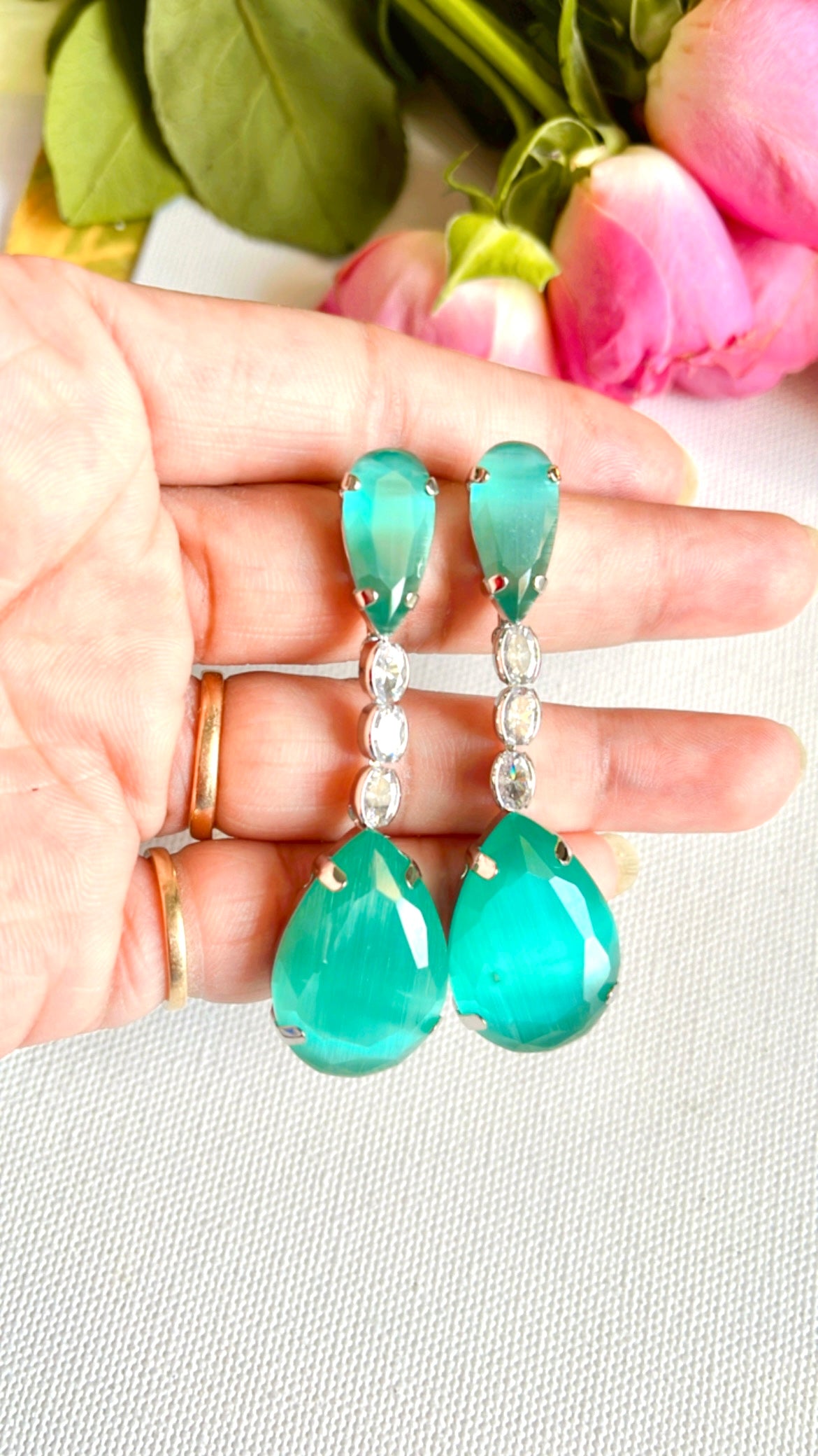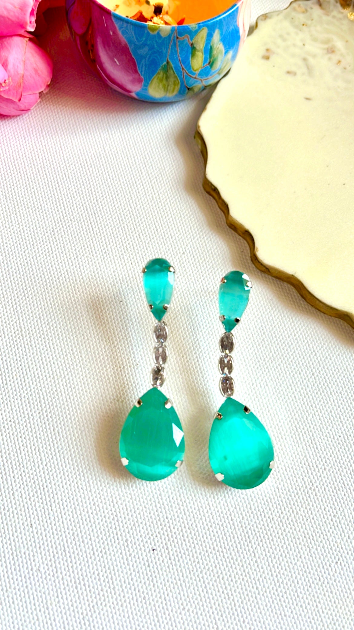 These Earrings are the perfect party accessory. With intricate detailing and a stunning combination of American diamond and stone embellishments, these long earrings are sure to make a statement. Elevate any outfit with these elegant and eye-catching earrings.