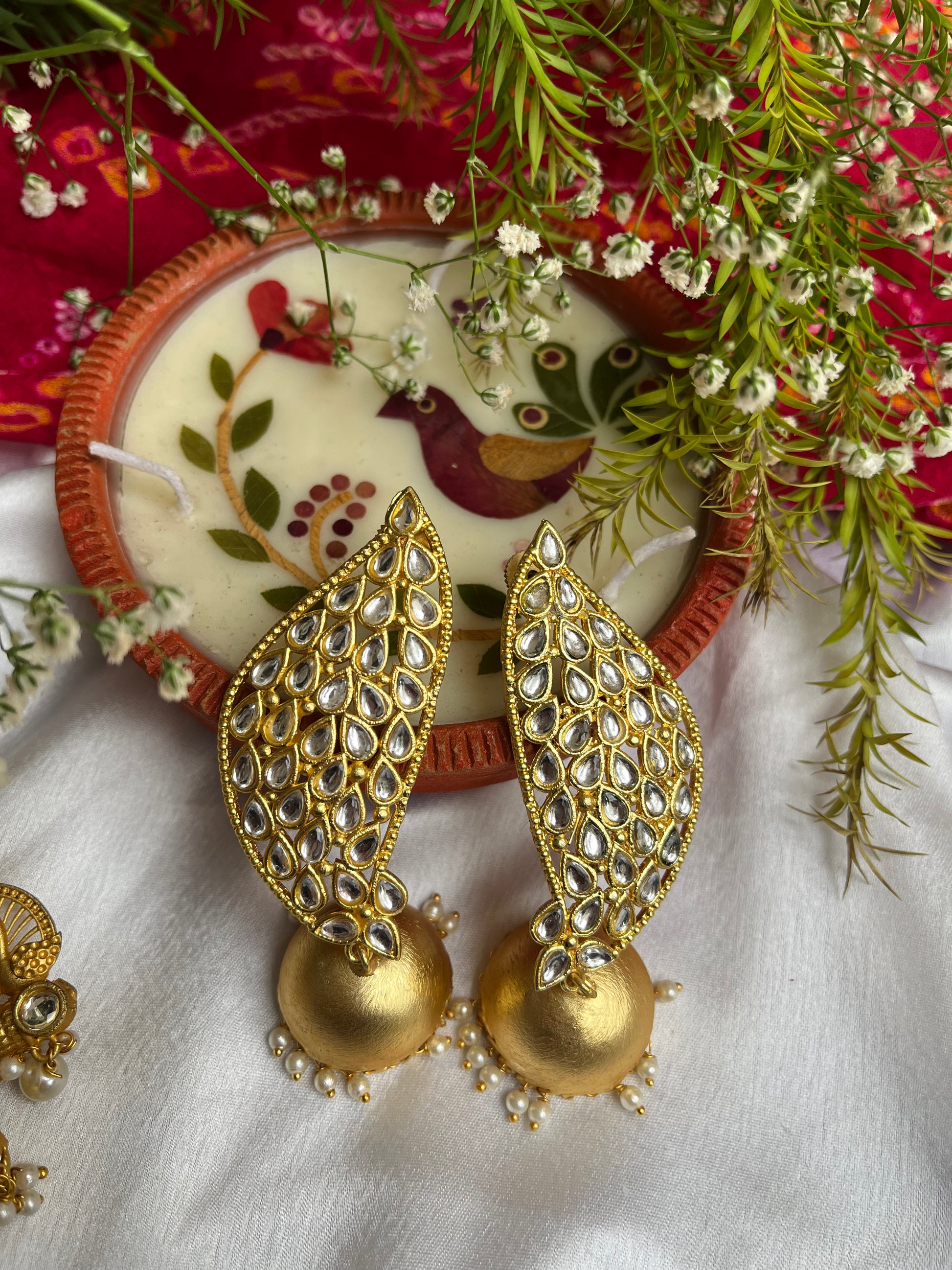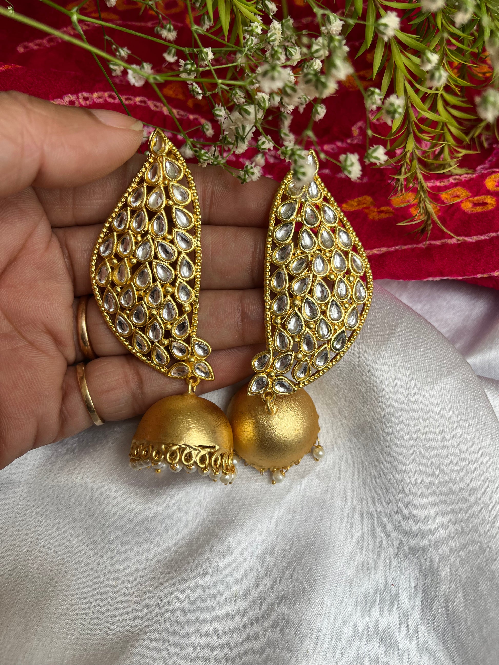 Introducing our Sitar Ethnic Earring, perfect for your wedding attire. Handcrafted with brass and finished in a beautiful golden hue, these Jhumka earrings exude elegance and tradition. Enhance your ethnic look with this stunning accessory.