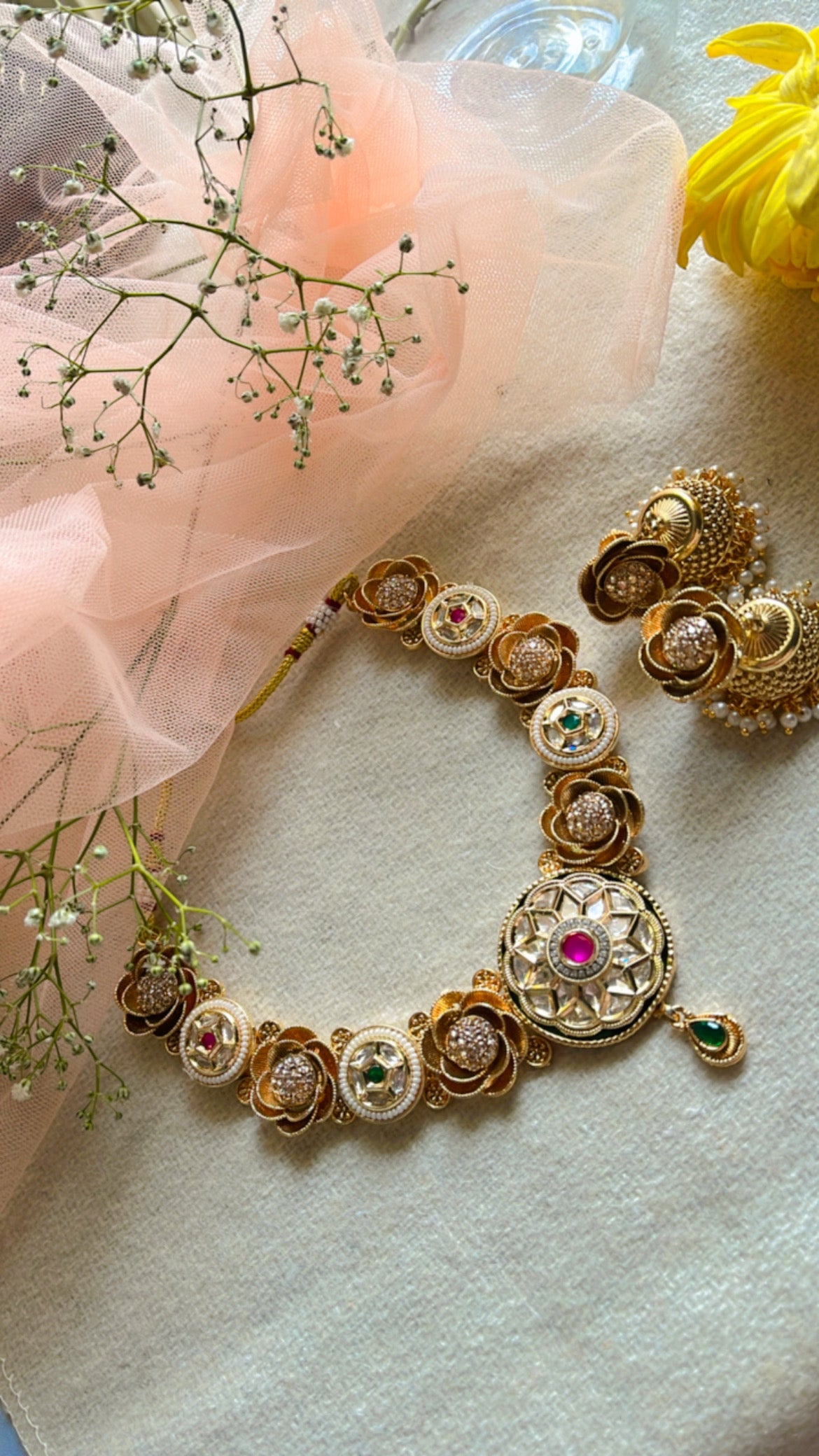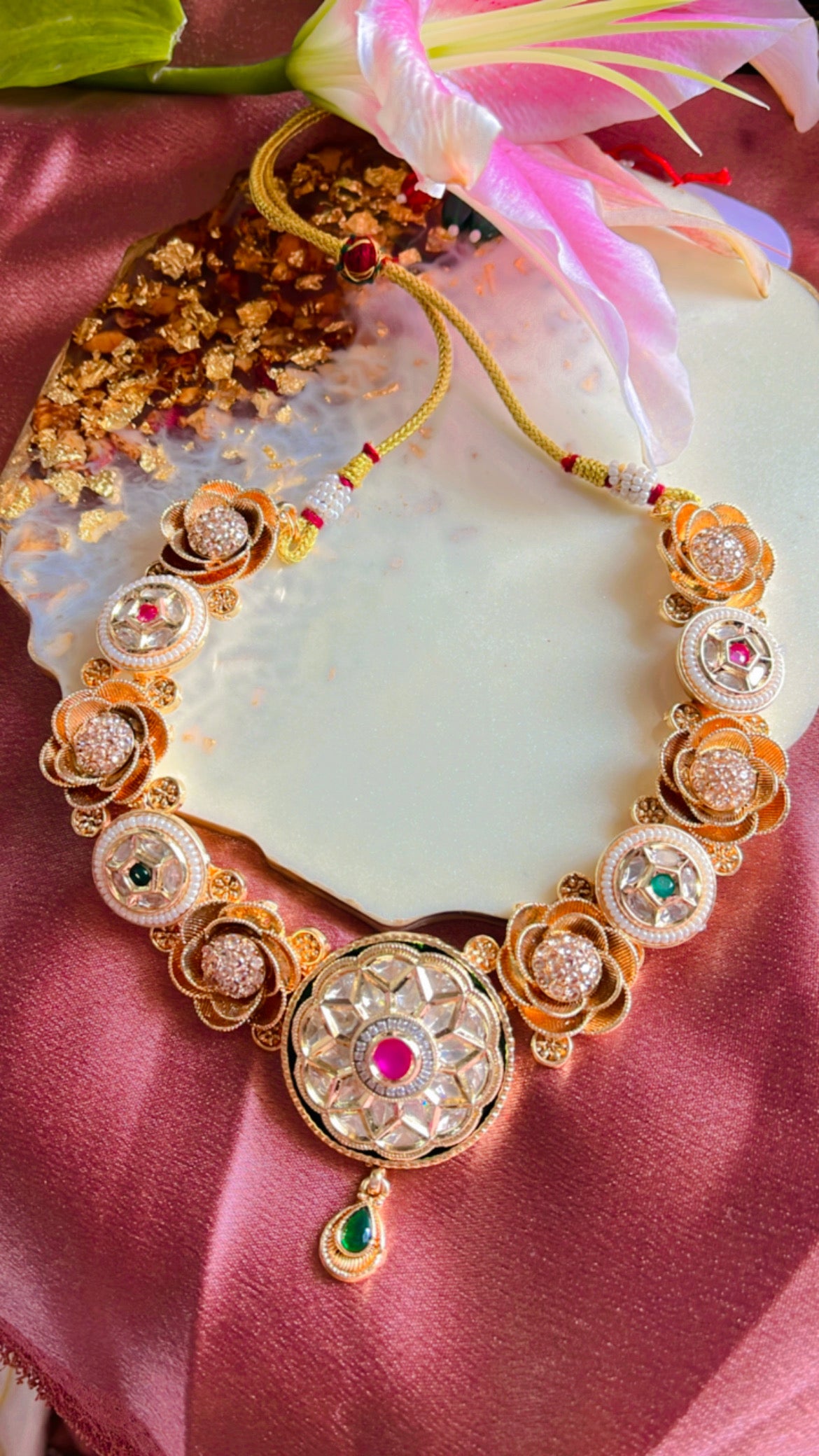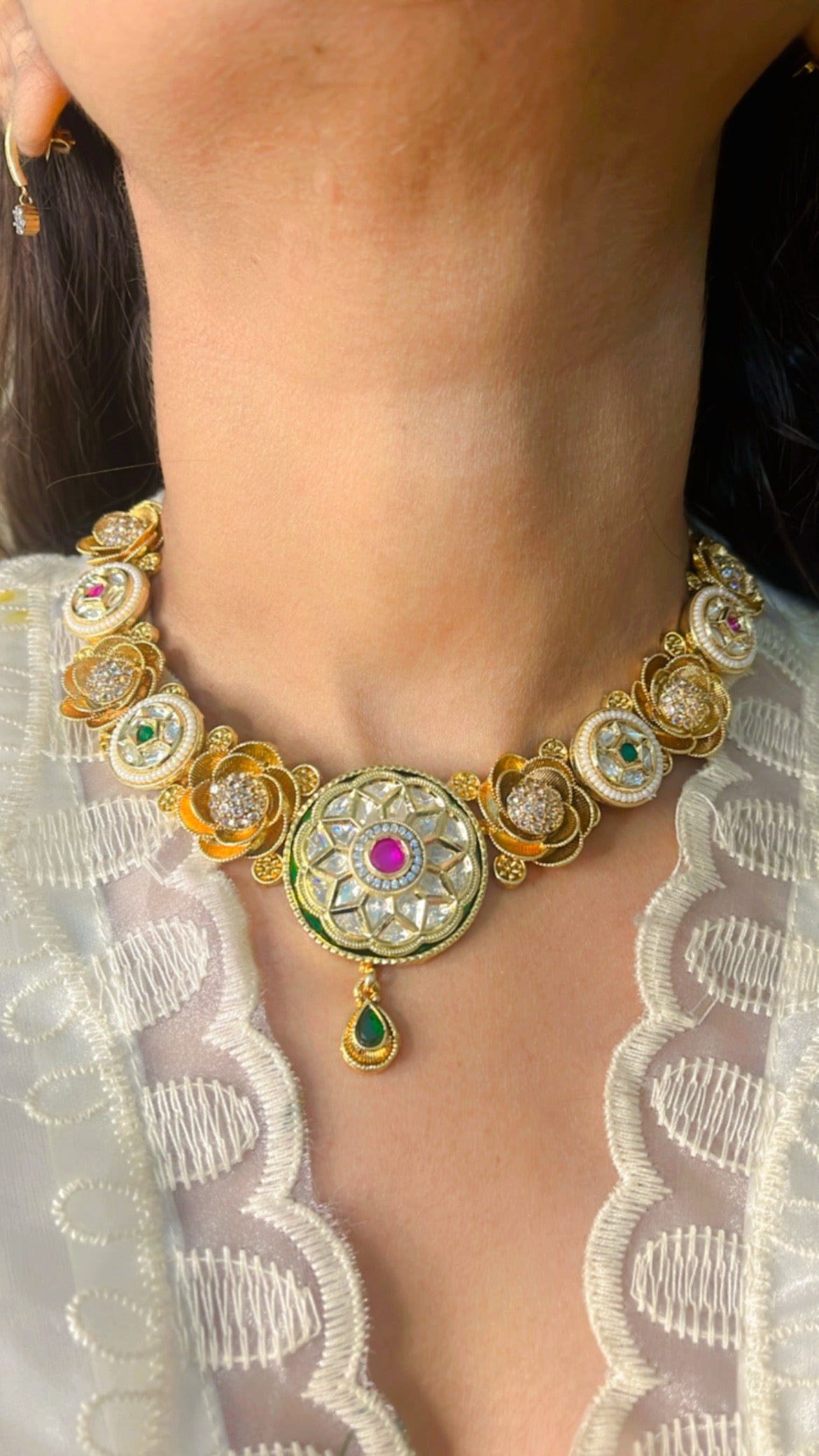 The Anavi Neckpiece Set is the perfect bold accessory for a wedding. Made with exquisite craftsmanship, this statement piece is sure to add a touch of elegance to any ensemble. Upgrade your style and make a lasting impression with this stunning set.
