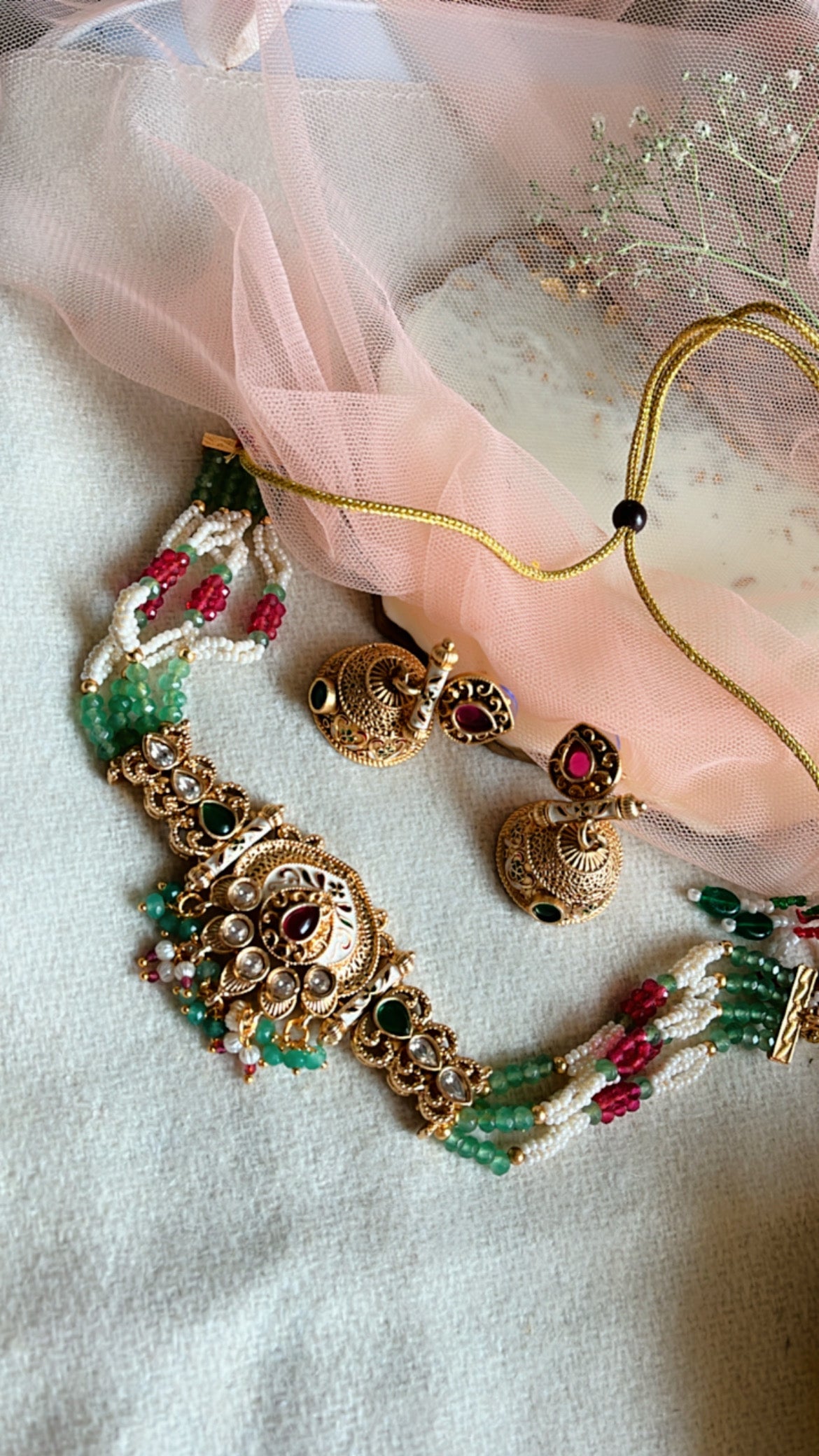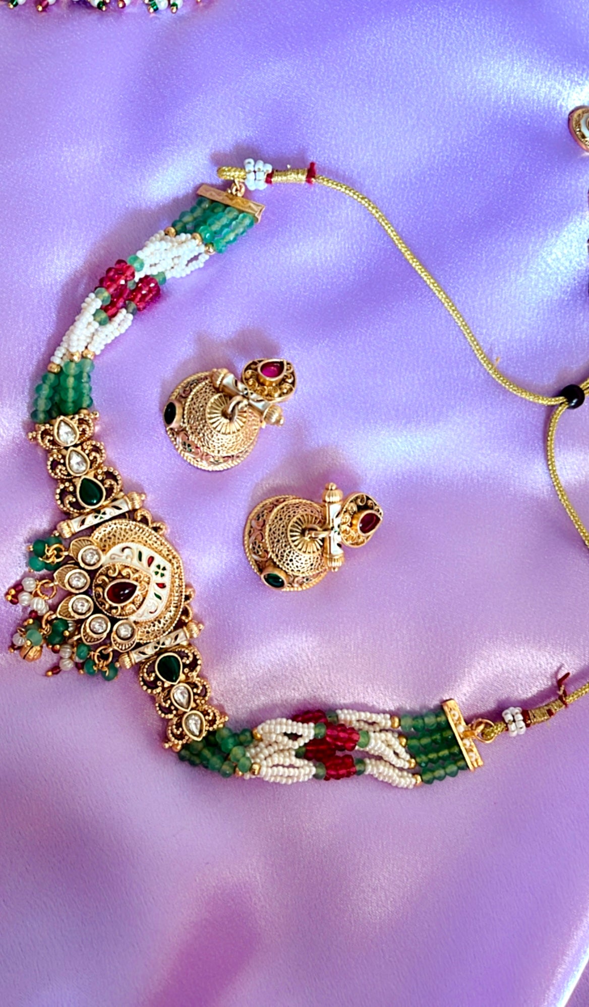 The Neelam Neckpiece Set combines simplicity and elegance, making it an ideal choice for festive occasions and parties. Featuring timeless pearls, this set adds a refined touch to any outfit, ensuring you look graceful and sophisticated at every event.