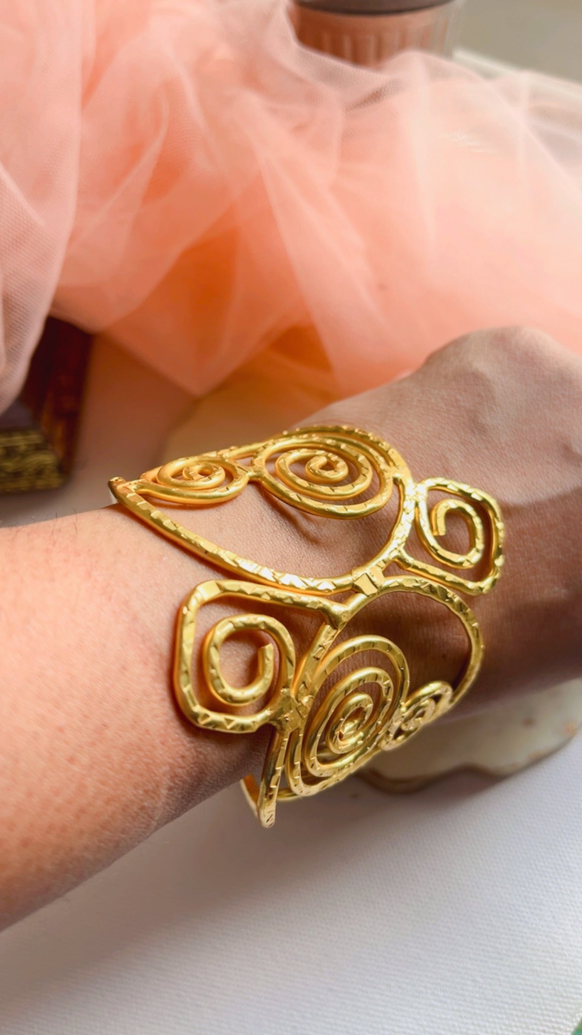 Upgrade your style with the Arya Golden Handcuff. Crafted with high quality brass and a stunning silver polish, this bangle adds a touch of boho flair to any outfit. Bold and beautiful, it's the perfect fusion accessory for those looking to make a statement.