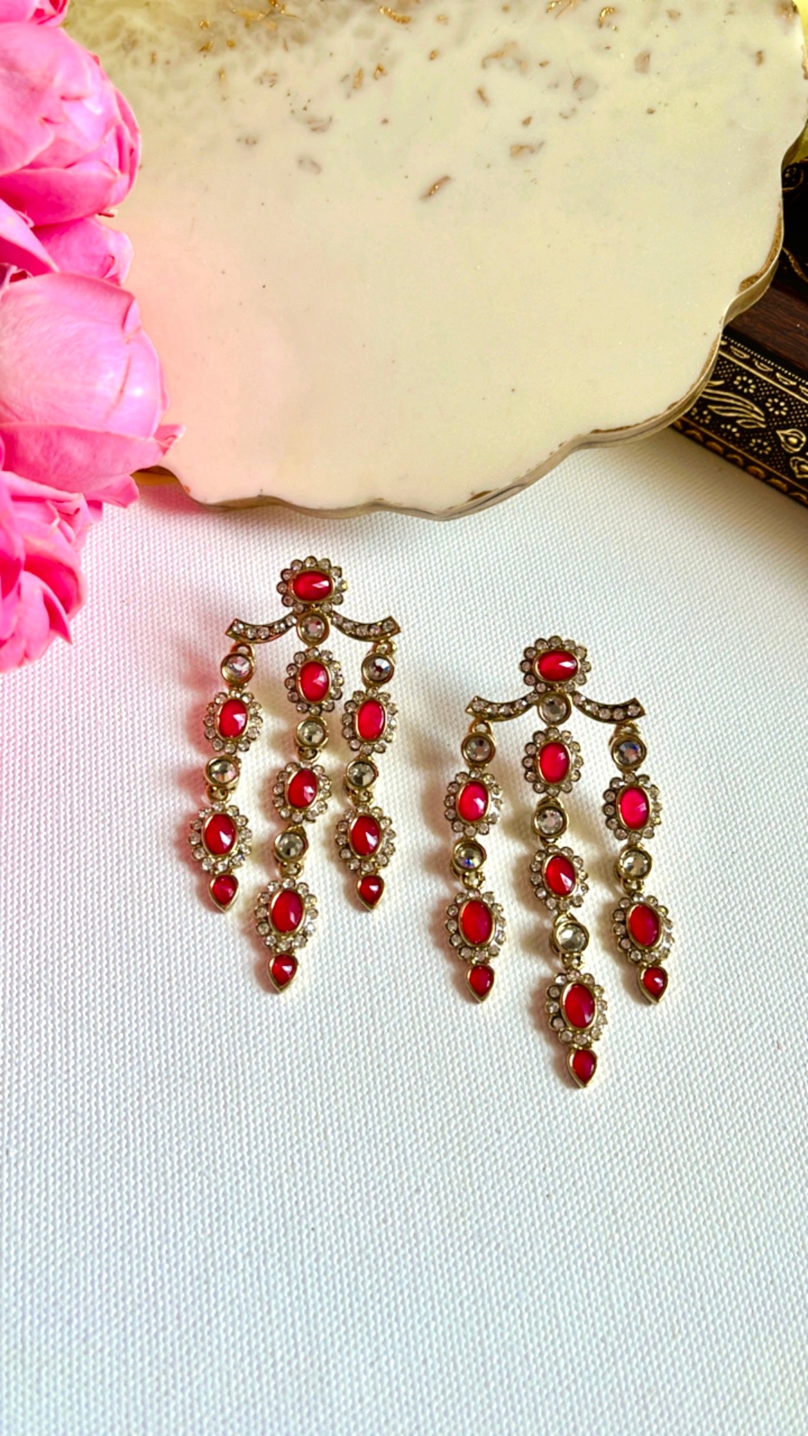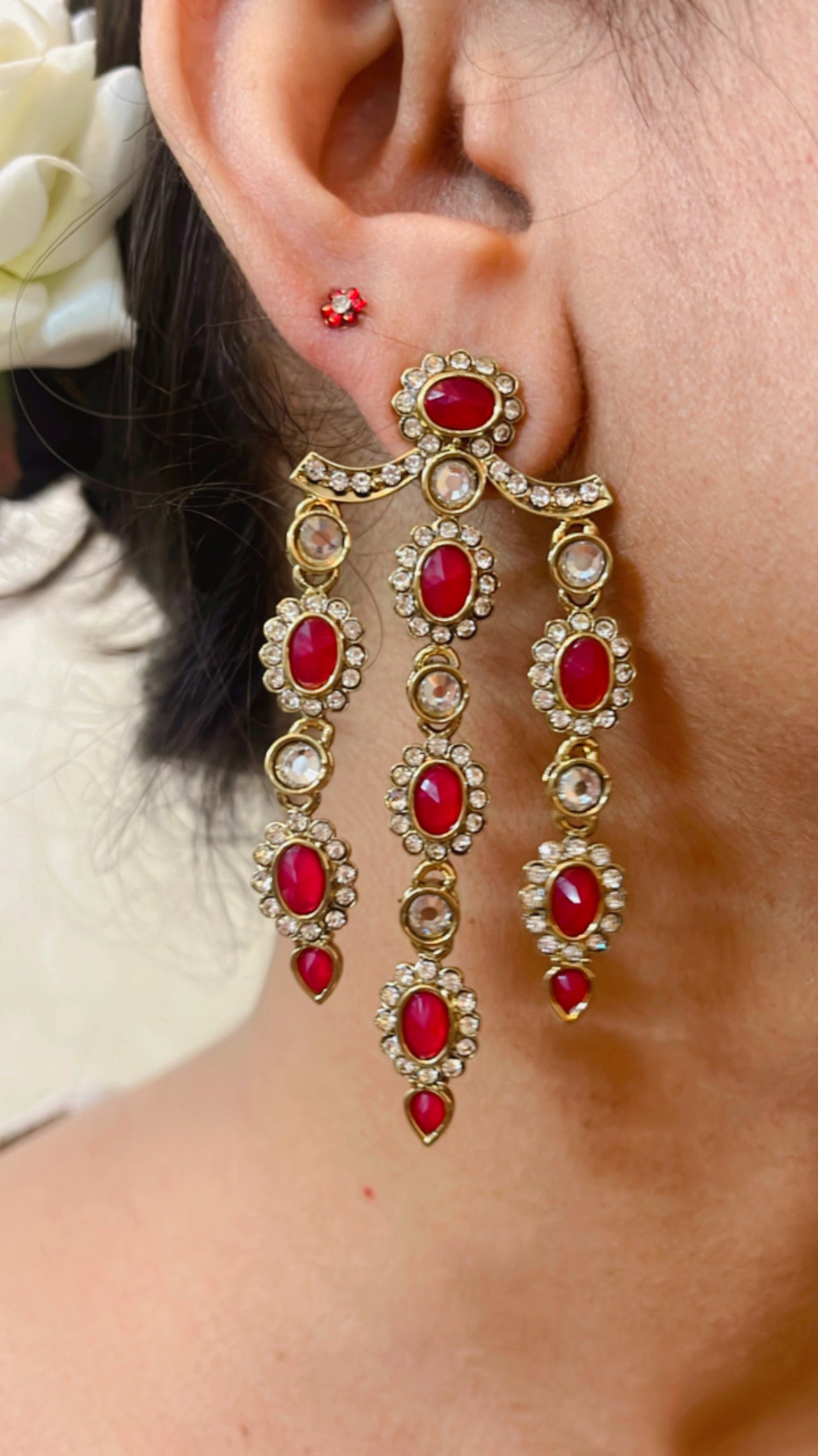 These Purple Earrings are the perfect party accessory. With intricate detailing and a stunning combination of kundan, and stone embellishments, these long earrings are sure to make a statement. Elevate any outfit with these elegant and eye-catching earrings.
