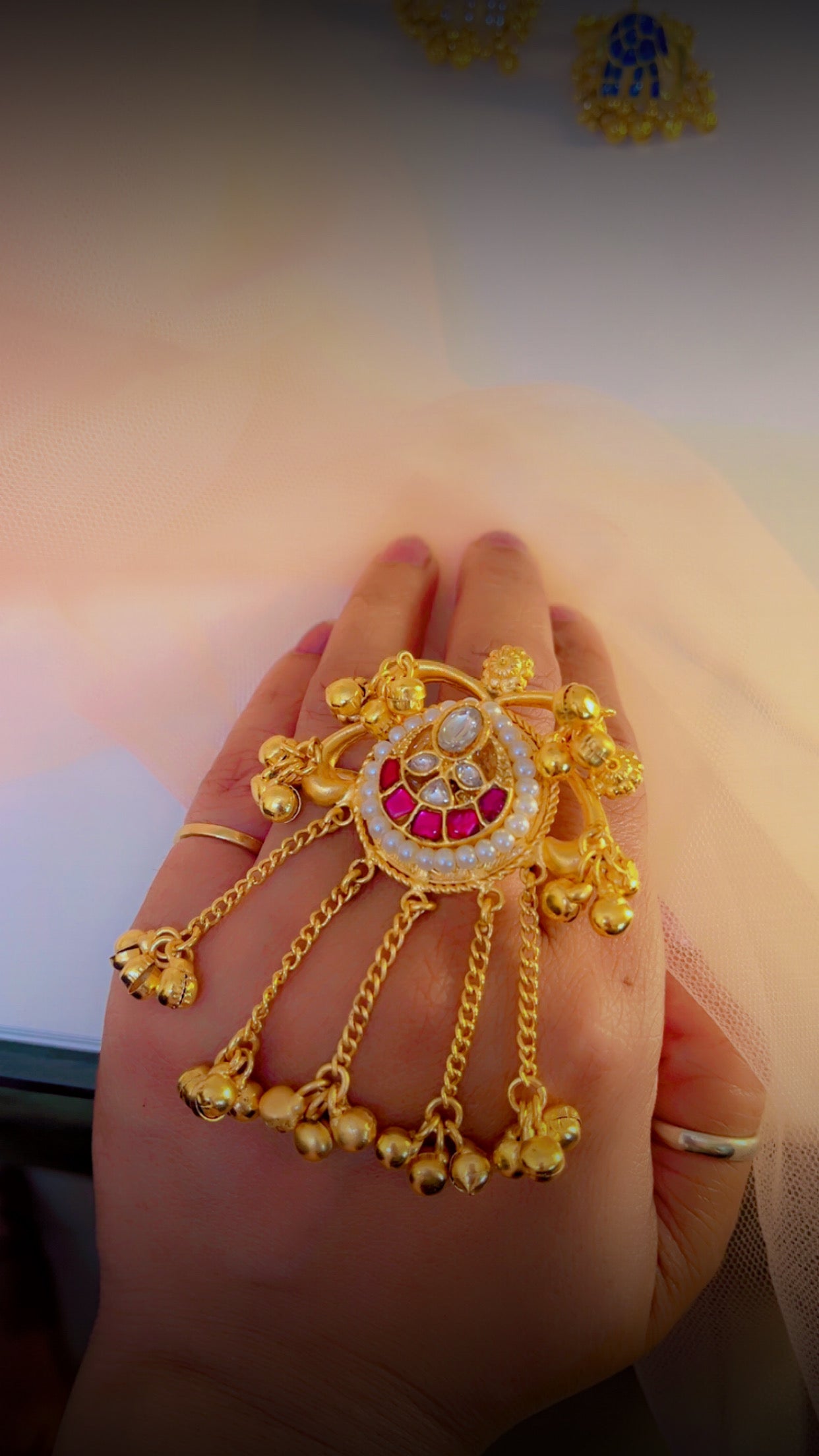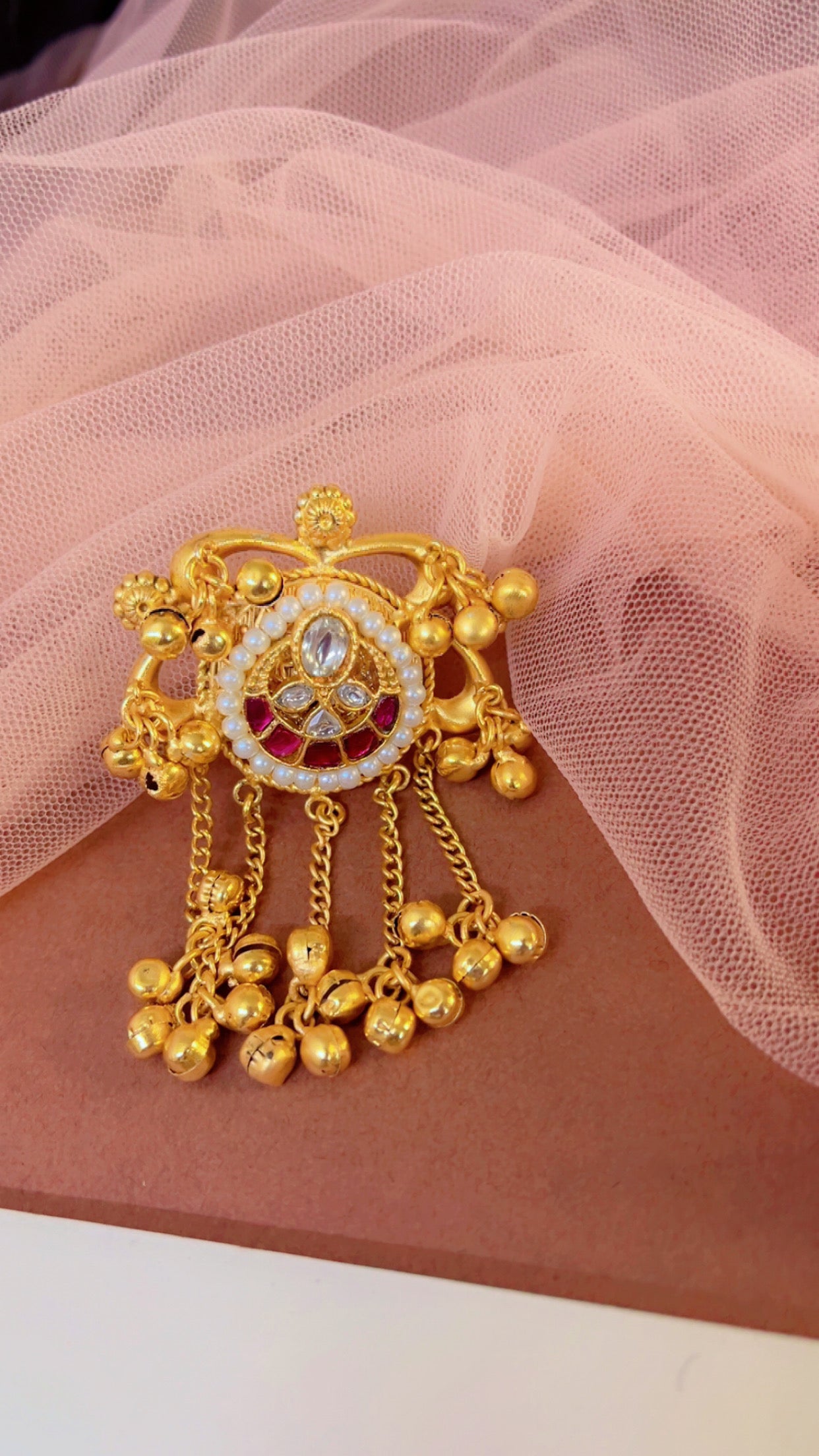 The Myra Ghungaroo Golden Ring is expertly crafted from high-quality brass with a lustrous gold polish, delivering lasting elegance. Perfectly designed for festivals and weddings, its bold and beautiful form adds a distinctive charm to your traditional attire. This ring embodies a timeless appeal, making it a refined choice for special occasions where sophistication meets festive spirit.
