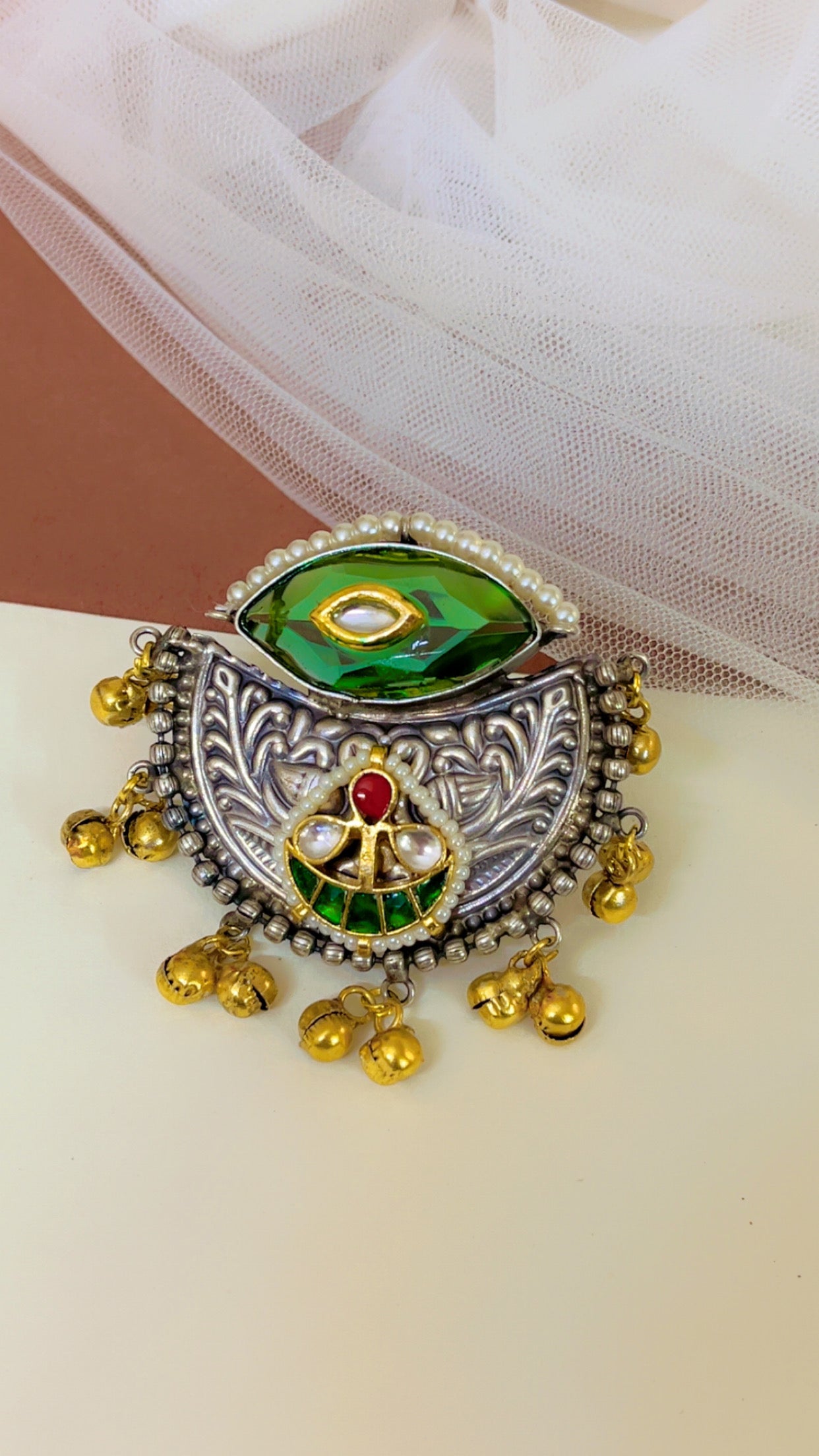 Elevate your festive looks with the Joshnika Silver Ring, a striking statement piece crafted to impress. Its elegant design complements celebration attire, adding a touch of sophistication and sparkle to any ensemble. Perfect for special occasions, this ring enhances your style with expert precision and refined beauty.