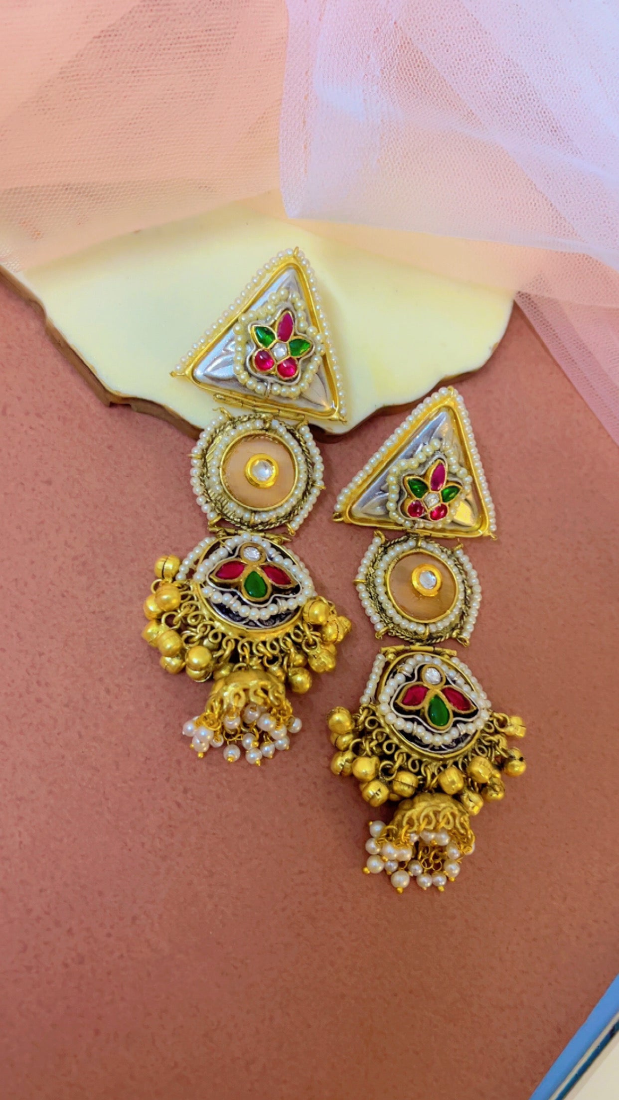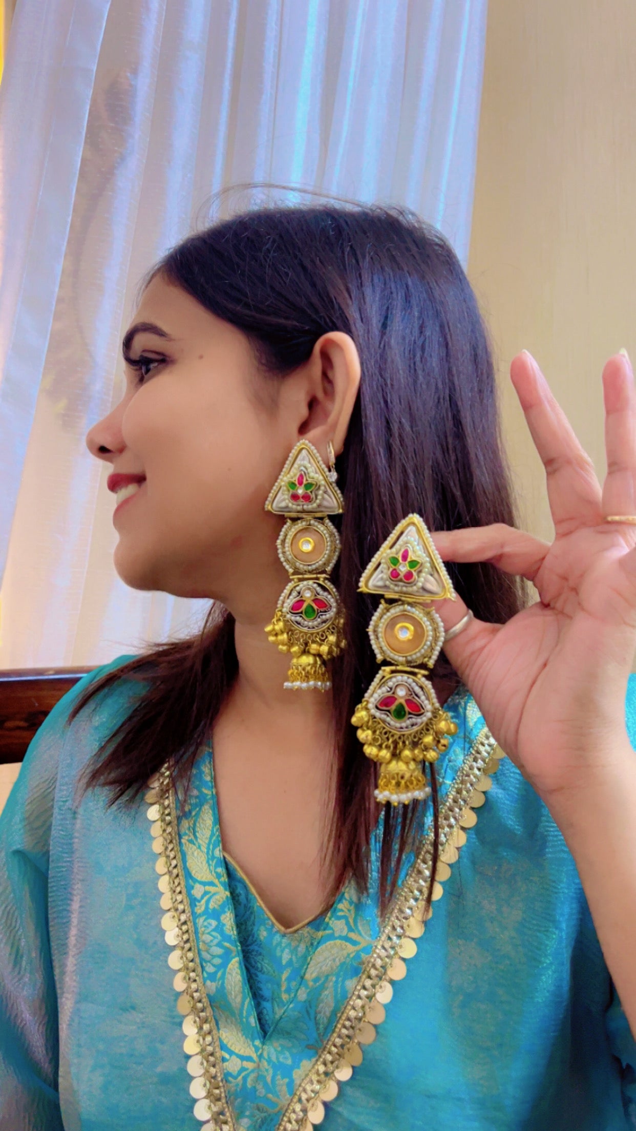 Elevate your elegance with these Yellow Sara Statement Earrings, inspired by the timeless beauty of Kashmiri craftsmanship. Their delicate design and radiant yellow hue bring a sophisticated yet striking charm to any ensemble, perfect for making a graceful statement at special occasions or everyday wear.
