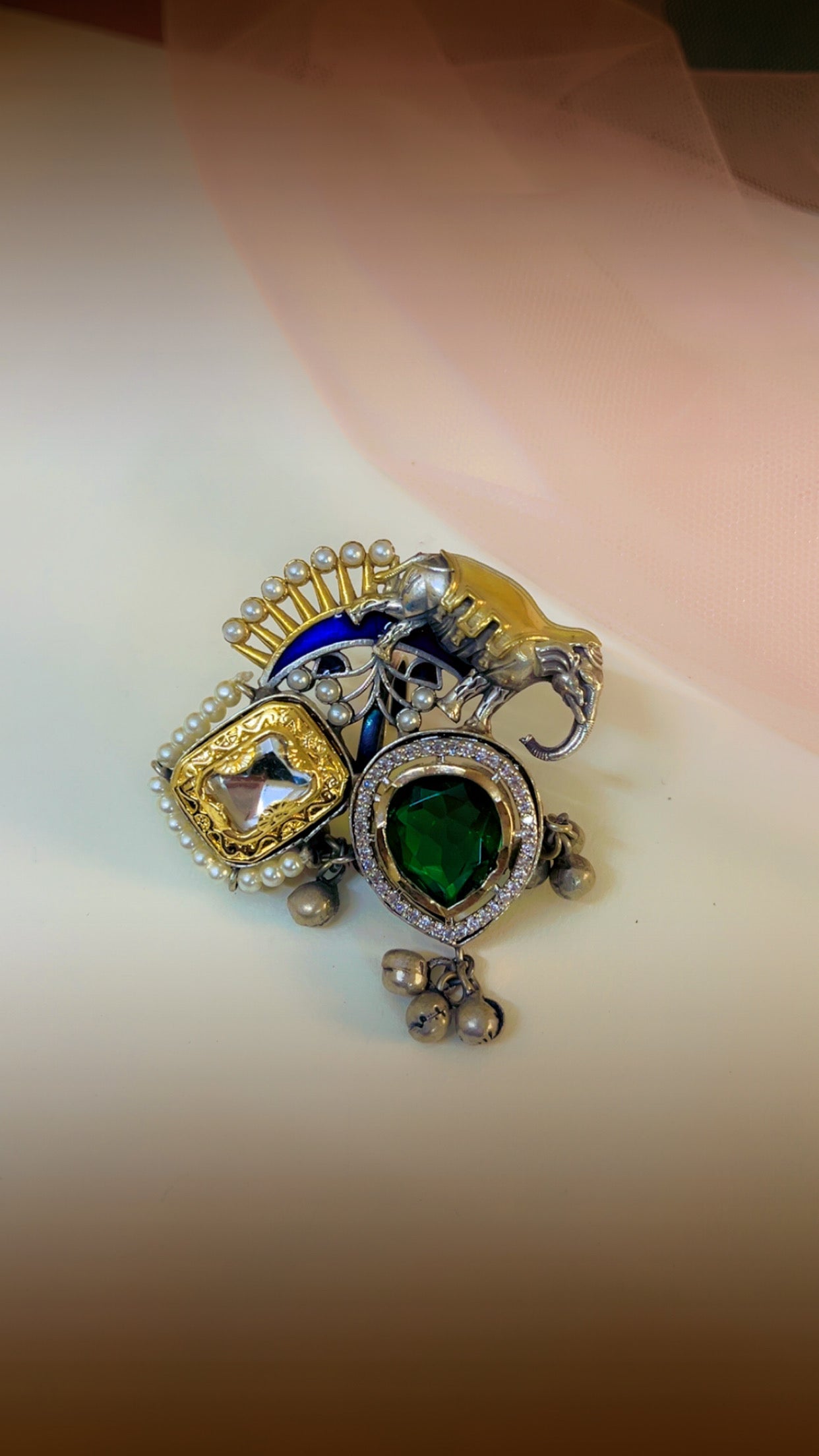 The Stuti Silver Ring combines expert craftsmanship with distinctive design, featuring a boho-style Elephant embellishment that adds a unique cultural charm. Delicate pearl detailing enhances its elegance, making it a versatile accessory that complements both casual and sophisticated looks. This ring is a refined statement piece for those who appreciate intricate artistry and timeless style.