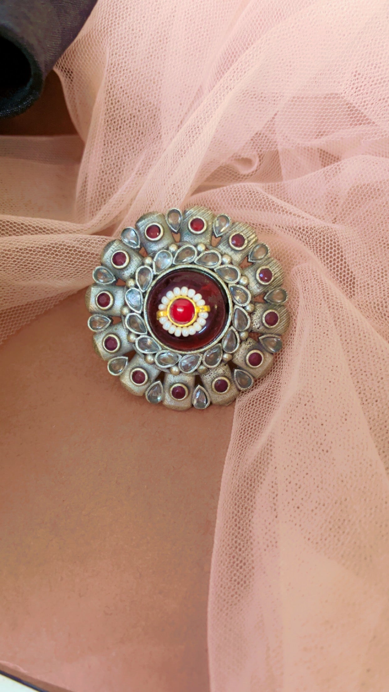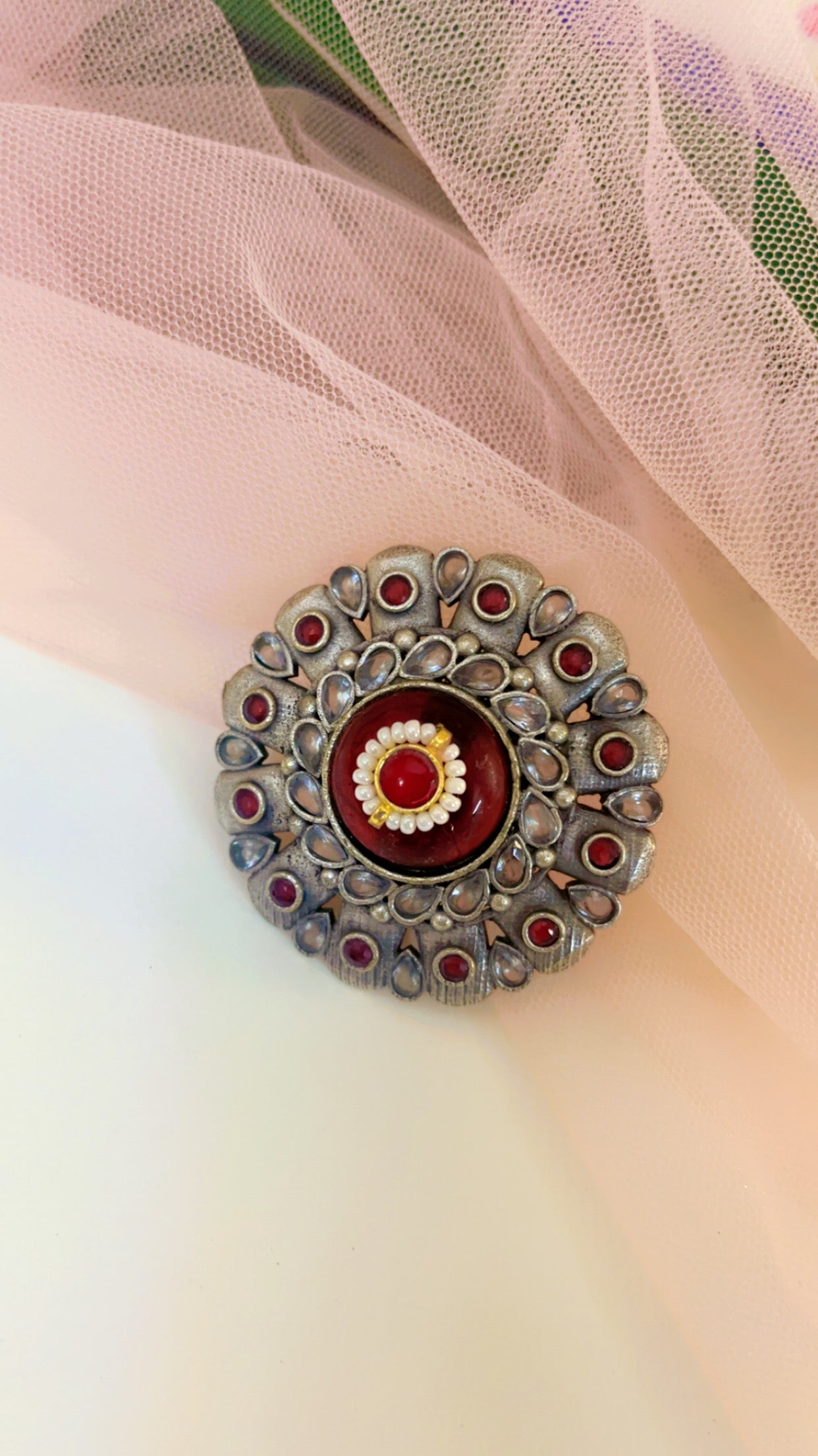 Red Sudipta Silver Ring