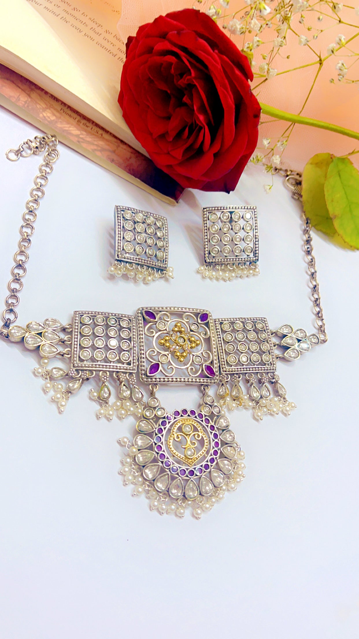 This Rameya neckpiece is the perfect statement piece for birthday parties and get-togethers. Its simple and elegant design exudes sophistication and adds a touch of glamour to any outfit. Made with high-quality materials, it is sure to make a solid statement for any occasion.